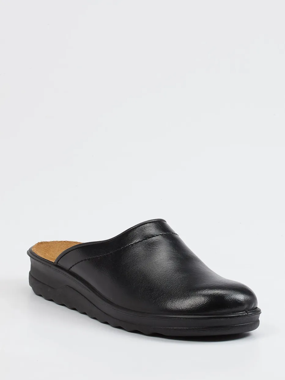 Minimalistischer Komfort für jeden Tag.Westland präsentiert einen unisex Hausschuh im modernen Clog-Stil. Für gemütliche Stunden zu Hause oder als stilbewusster Alltagsbegleiter bietet dieser schwarze Hausschuh aus hochwertigem Kalbleder nicht nur eine samtig matte Oberfläche, sondern auch ein lederbezogenes, ergonomisches Fußbett. Die profilierte PU-Sohle dämpft zuverlässig jeden Schritt. Ton-in-Ton-Nähte und die geschlossene Vorderpartie mit offenem Fersenbereich unterstreichen den minimalistischen Charakter, geprägt von Komfort-Design und Quiet Luxury. Er lässt sich mühelos mit Loungewear oder smarten Casual-Looks kombinieren. Ein Hausschuh mit durchdachtem Komfort und zeitlos-entspannter Ästhetik.