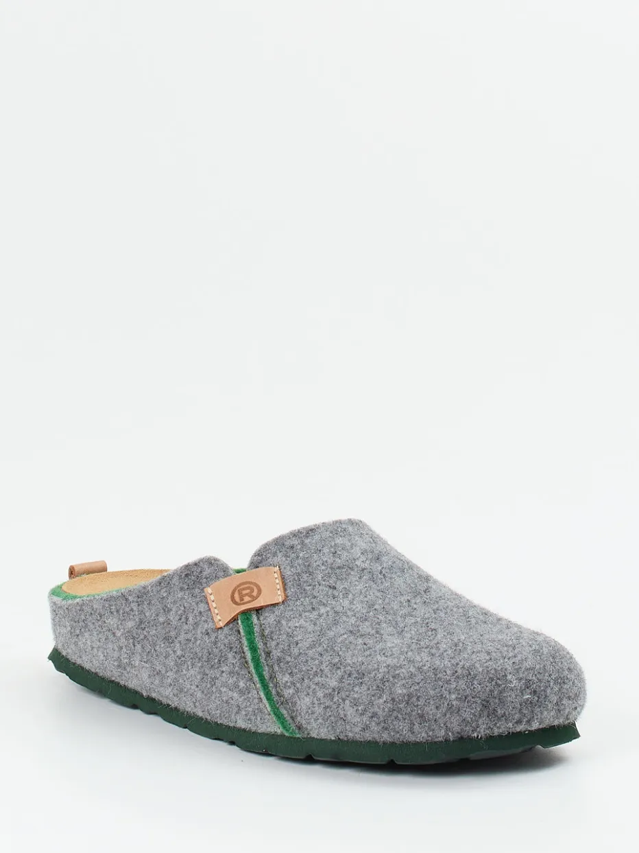 Wärmender Komfort für gemütliche Momente.Die Marke Rohde präsentiert mit ihrem Clog-Modell einen unisex Hausschuh der Kategorie Komfort. Ideal für entspannte Zeiten daheim, überzeugt der Hausschuh durch sein ergonomisches Echtleder-Fußbett und die griffige, rutschhemmende Gummisohle. Der mittelgraue Wollfilz zeigt eine weiche, filzartige Oberfläche, die durch eine tannengrüne Paspelierung im Fersenbereich spannungsvoll akzentuiert wird. Das offene Fersendesign erleichtert das Hineinschlüpfen, während ein geprägter Lederpatch das dezente Markenbranding übernimmt. Inspiriert vom alpinen Minimalismus passt dieser Filzclog stilistisch perfekt zu Loungewear und Naturtönen. Hochwertige Materialien mit langlebigem Trageanspruch – Rohde-Komfort für Zuhause.