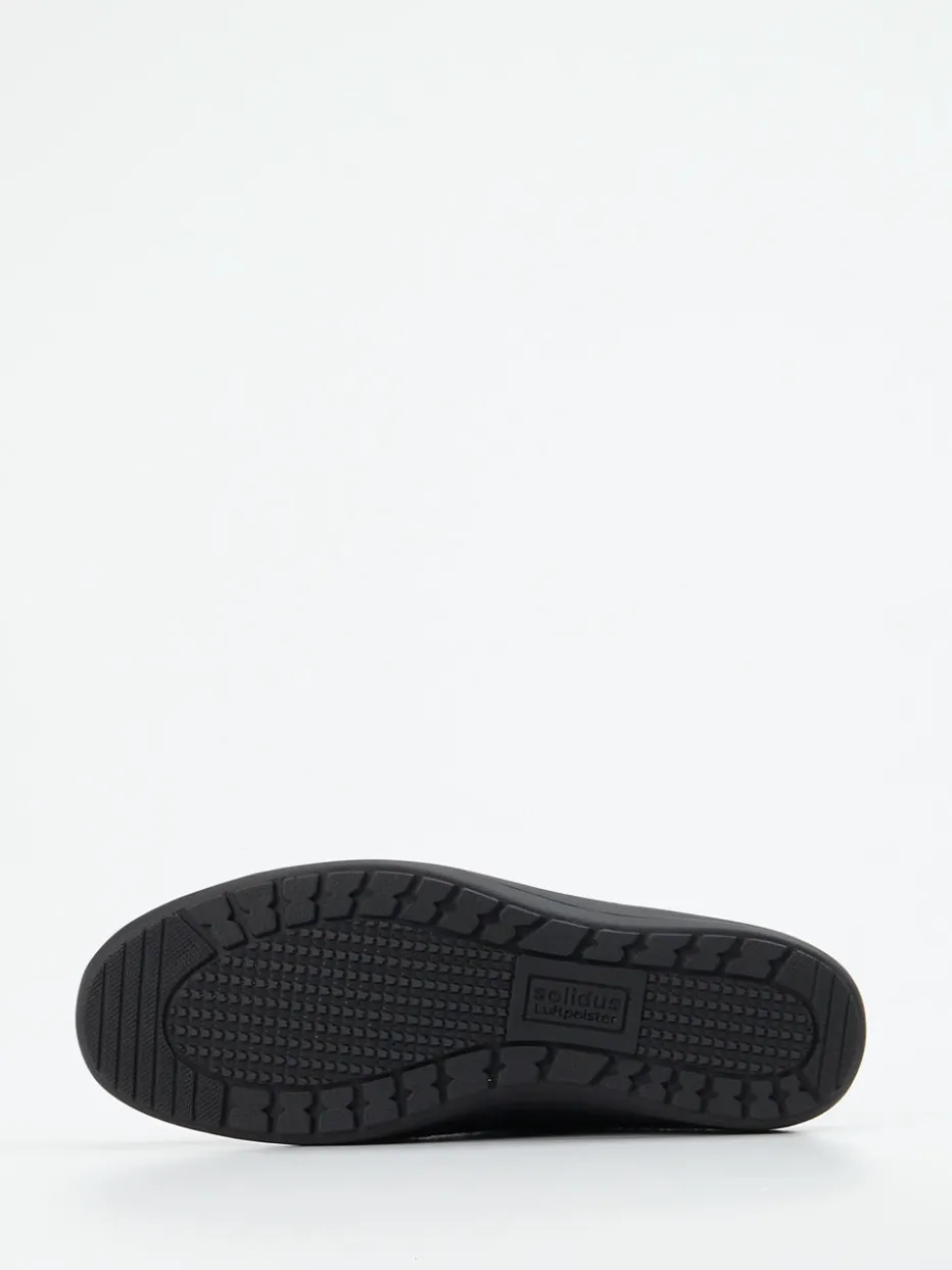 Mit ergonomischer Luftpolstersohle und verstellbarem Klettverschluss bieten diese Solidus-Pantoletten spürbaren Komfort und optimale Passform für entspannte Stunden zu Hause.