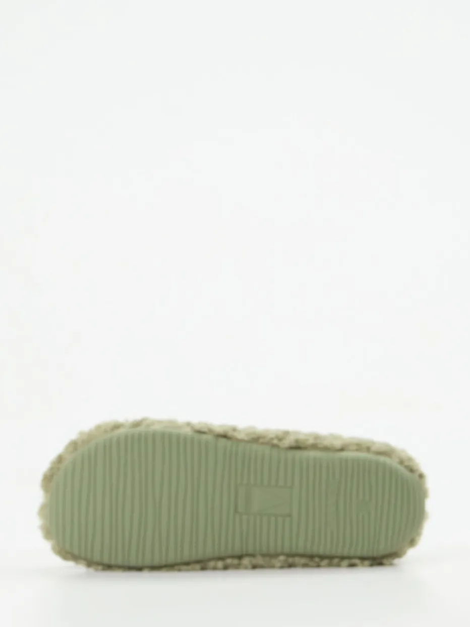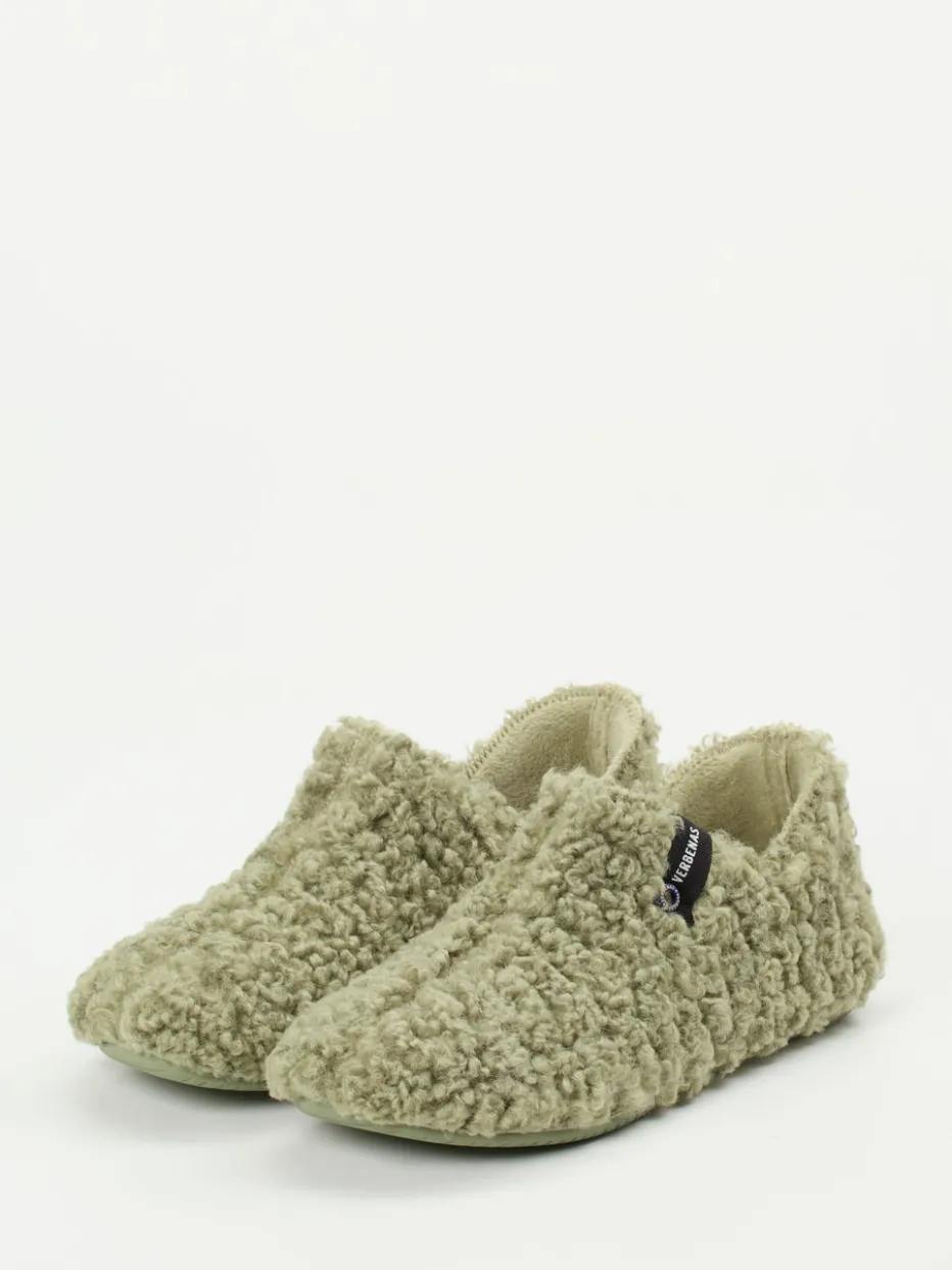 Sanfter Komfort für Zuhause.Die spanische Marke Verbenas präsentiert komfortorientierte Hausschuhe im modischen Slipper-Stil. Weiche Textilmaterialien in samtiger Felloptik umhüllen den Fuß in Salbeigrün – ideal für entspannte Stunden auf dem Sofa. Die runde, geschlossene Form mit elastischem Schlupfeinstieg lässt sich unkompliziert tragen. Ein Ton-in-Ton-Design mit dezentem Textil-Label verleiht dem Paar minimalistischen Charakter. Die profilierte Gummisohle bietet zuverlässige Rutschhemmung auf glatten Böden. Ein echtes Cozy-Comfort-Piece mit Loungewear-Anmutung. Verbenas kombiniert anspruchsvolle Verarbeitung mit alltagstauglicher Gemütlichkeit.