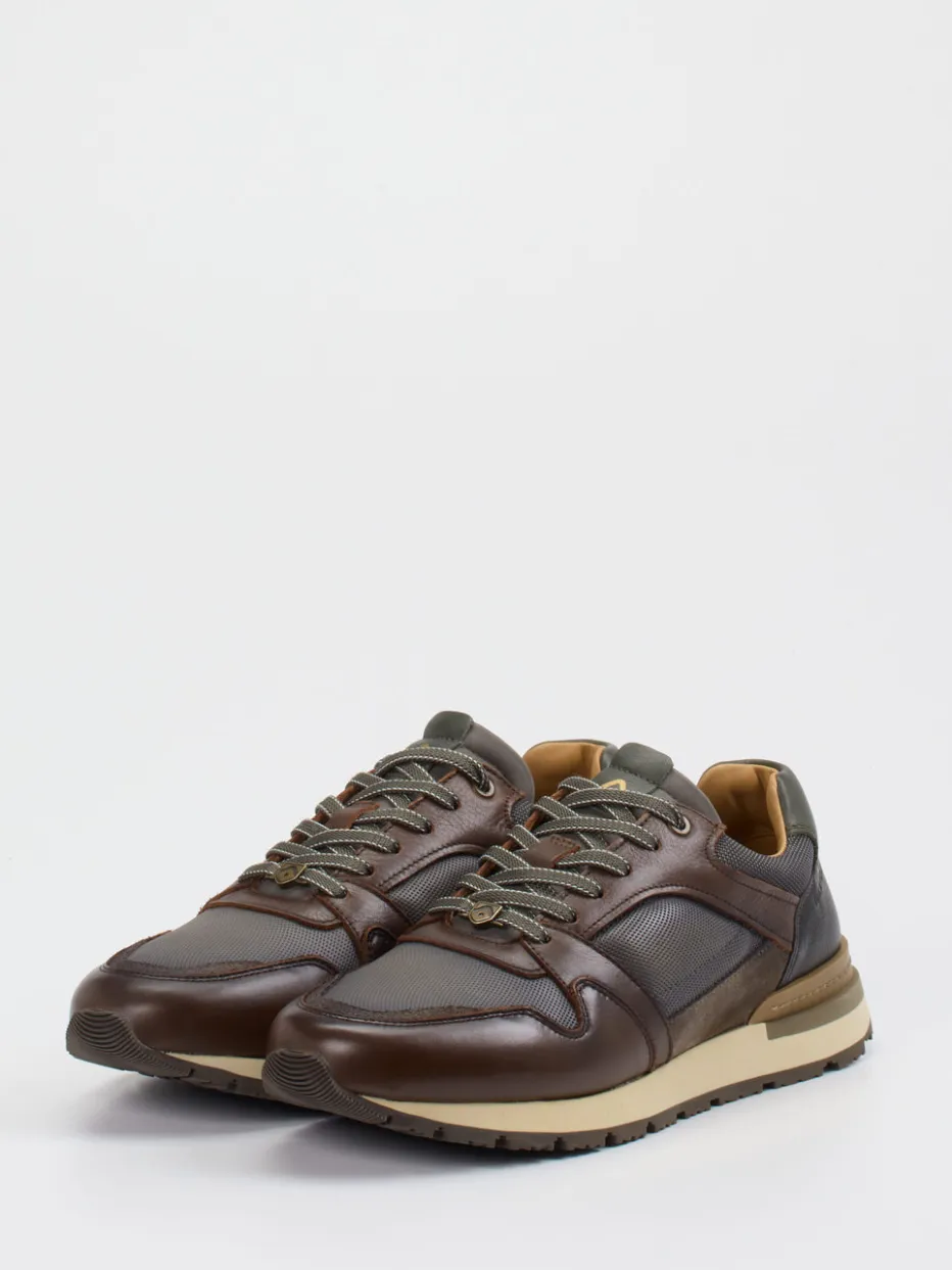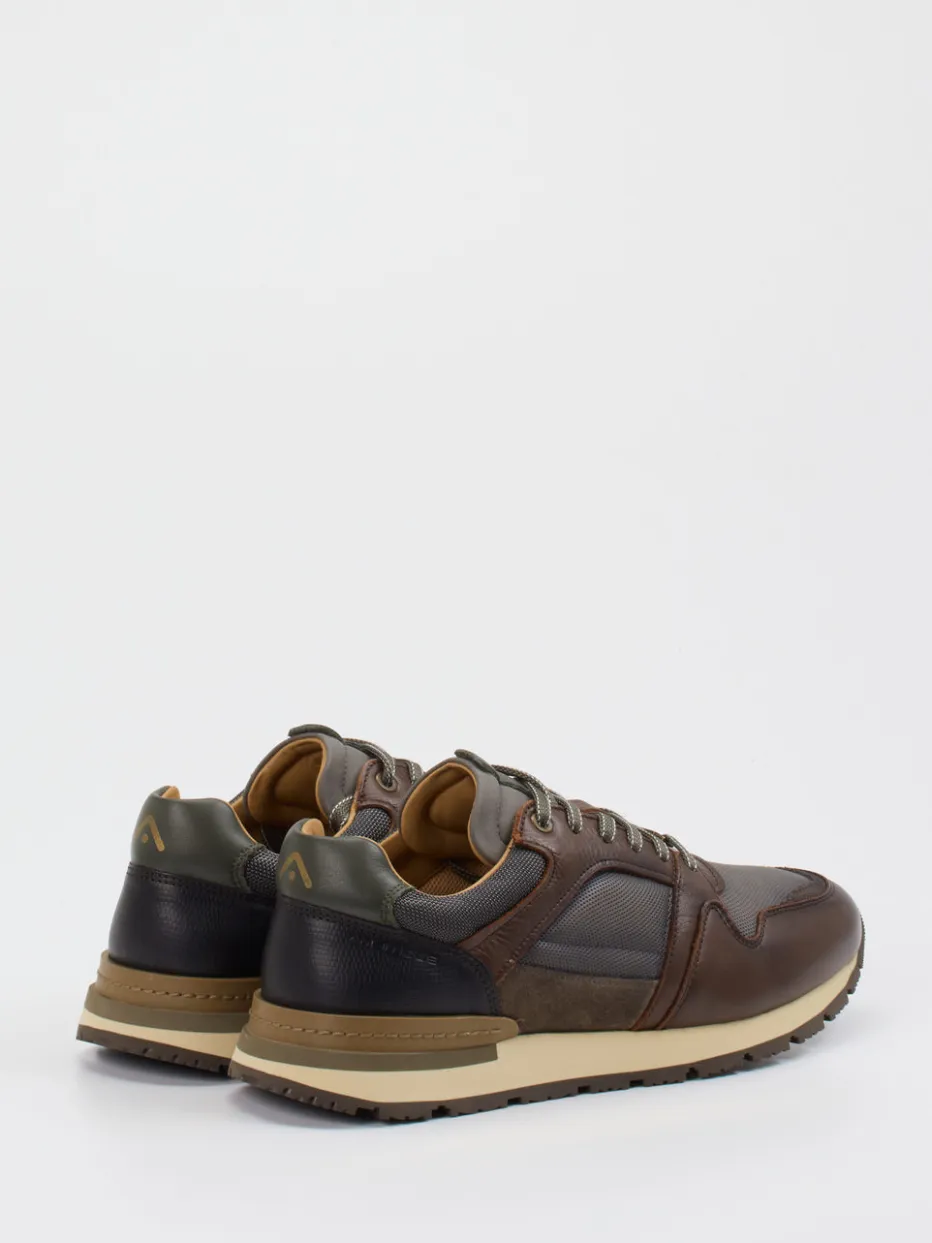 Retrolook trifft Funktionalität.Ambitious bringt mit diesem Herren-Sneaker im Retro-Runner-Stil ein stilvolles Modell für Herbst und Winter in die Freizeitgarderobe. Glattes Kalbleder wird durch Mesh- und Velourszonen ergänzt und bietet zusammen mit dem textilen Futter einen gelungenen Materialmix. Die dunkle Farbpalette aus Braun, Grau und Olivgrün verleiht ihm eine robuste Optik, unterstützt durch gepolsterten Schaftrand, zweifarbige Schnürsenkel und Outdoor-Profilsohle aus Gummi. Urban Utility trifft hier auf Retro-Sportswear – ideal für den Alltag oder leichte Outdoor-Aktivitäten. Kombiniert mit einer Outdoorjacke entsteht ein harmonischer Look. Ambitious steht bei diesem Modell für durchdachtes Design mit hochwertigem Materialeinsatz.