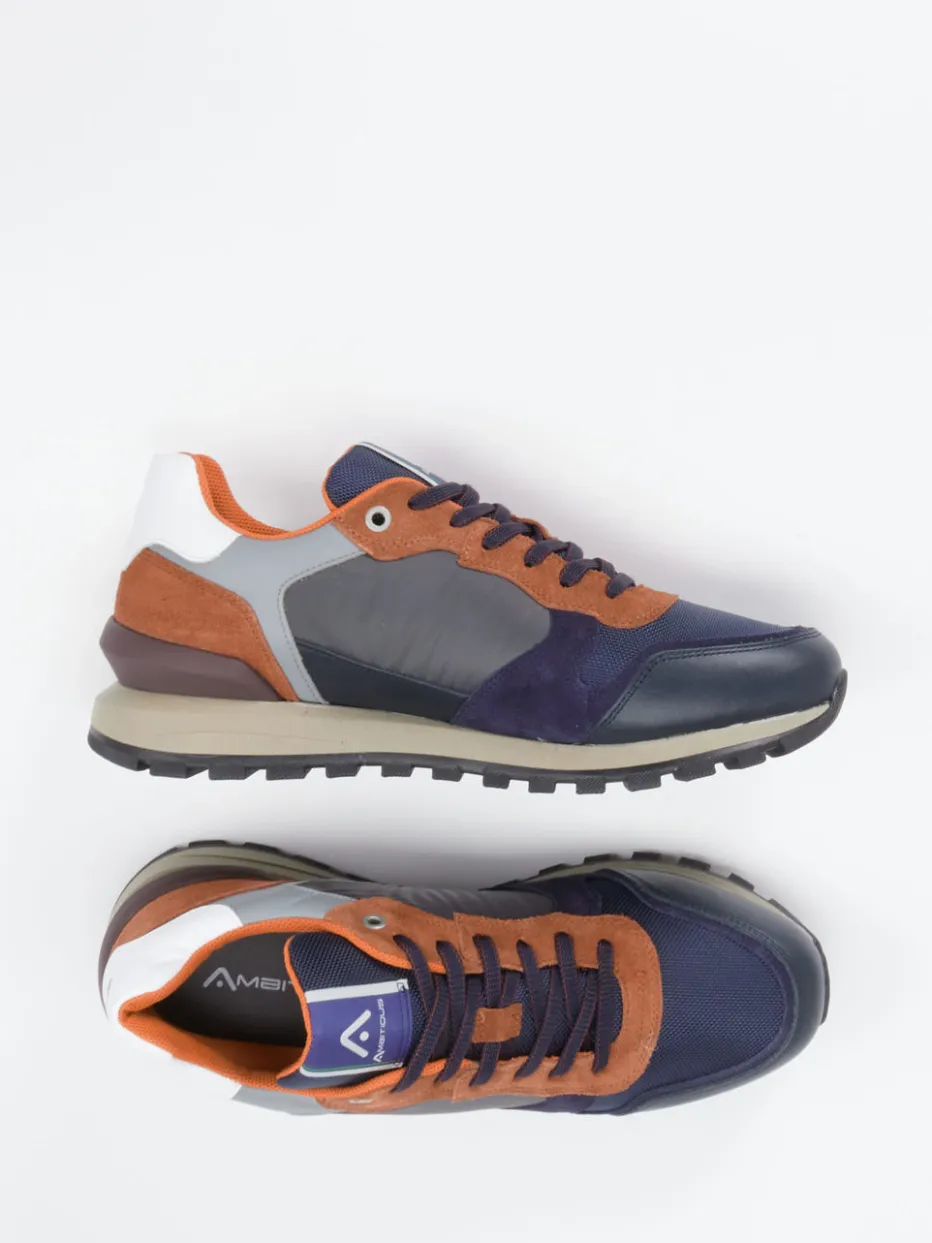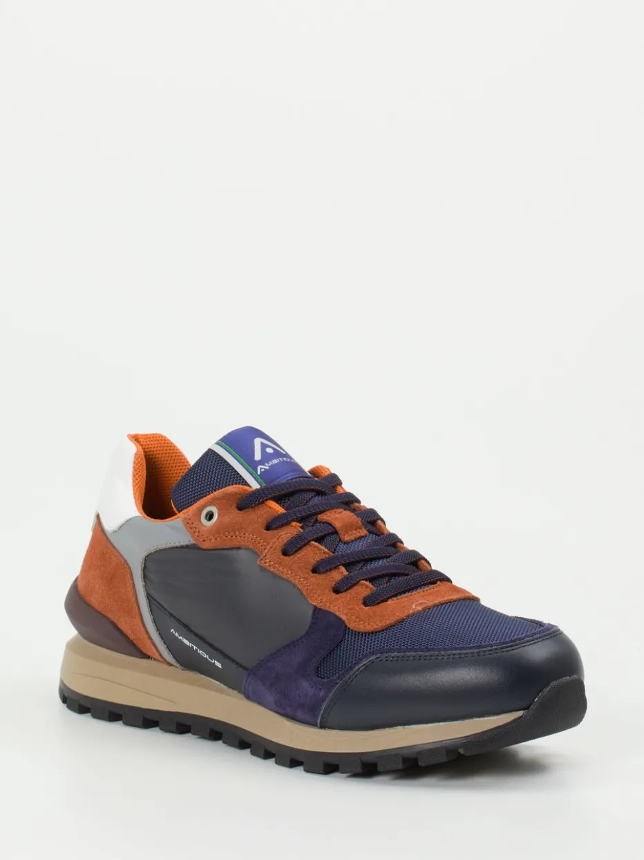 Farbspiel im klassischen Runner-Stil.Ambitious präsentiert einen sportiv-eleganten Herren-Sneaker aus der Retro-Running-Kategorie. Für lässige Freizeitmomente mit modischem Anspruch bietet dieses Modell eine Kombination aus samtigem Veloursleder und atmungsaktivem Mesh. Die blaue Grundfarbe trifft auf rostbraune und graue Akzente im angesagten Color-Blocking-Stil. Die klassische Silhouette mit gepolstertem Schaft, robustem Textilfutter und profilierter Gummisohle garantiert angenehmen Tragekomfort. Logo-Details an Seite und Zunge setzen dezente Markenakzente. Ideal zu Jogpants oder urbanem Denim. Ein stylischer Alltagsbegleiter mit durchdachter Funktionalität und Markencharakter.