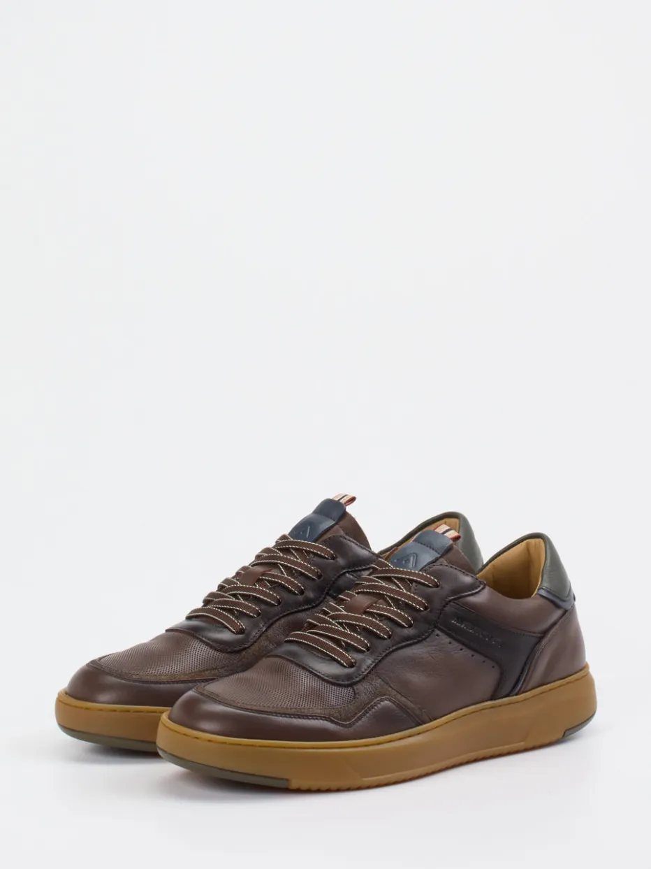 Urbaner Komfort trifft herbstliche Robustheit.Ambitious präsentiert einen Herren-Sneaker, der Funktionalität und Design gekonnt vereint. Ideal für entspannte Freizeitmomente oder stilvolle Casual-Looks bietet dieser Low-Top-Sneaker mit seiner Kombination aus braunem Kalbleder und glatten wie perforierten Mesh-Zonen einen ausdrucksstarken Materialmix. Die klassische, rund geschnittene Silhouette wird durch zweifarbige Schnürsenkel, Farbakzente an Zunge und Ferse sowie ein sportliches Sohlenprofil mit Grip-Details dynamisch ergänzt. Polsterungen am Einstieg sorgen für Tragekomfort, während Retro-Anklänge und Utility-Anmutung modische Relevanz beweisen. Ein stilvoller Alltagsbegleiter mit maskulinem Charakter und funktionalem Fokus.