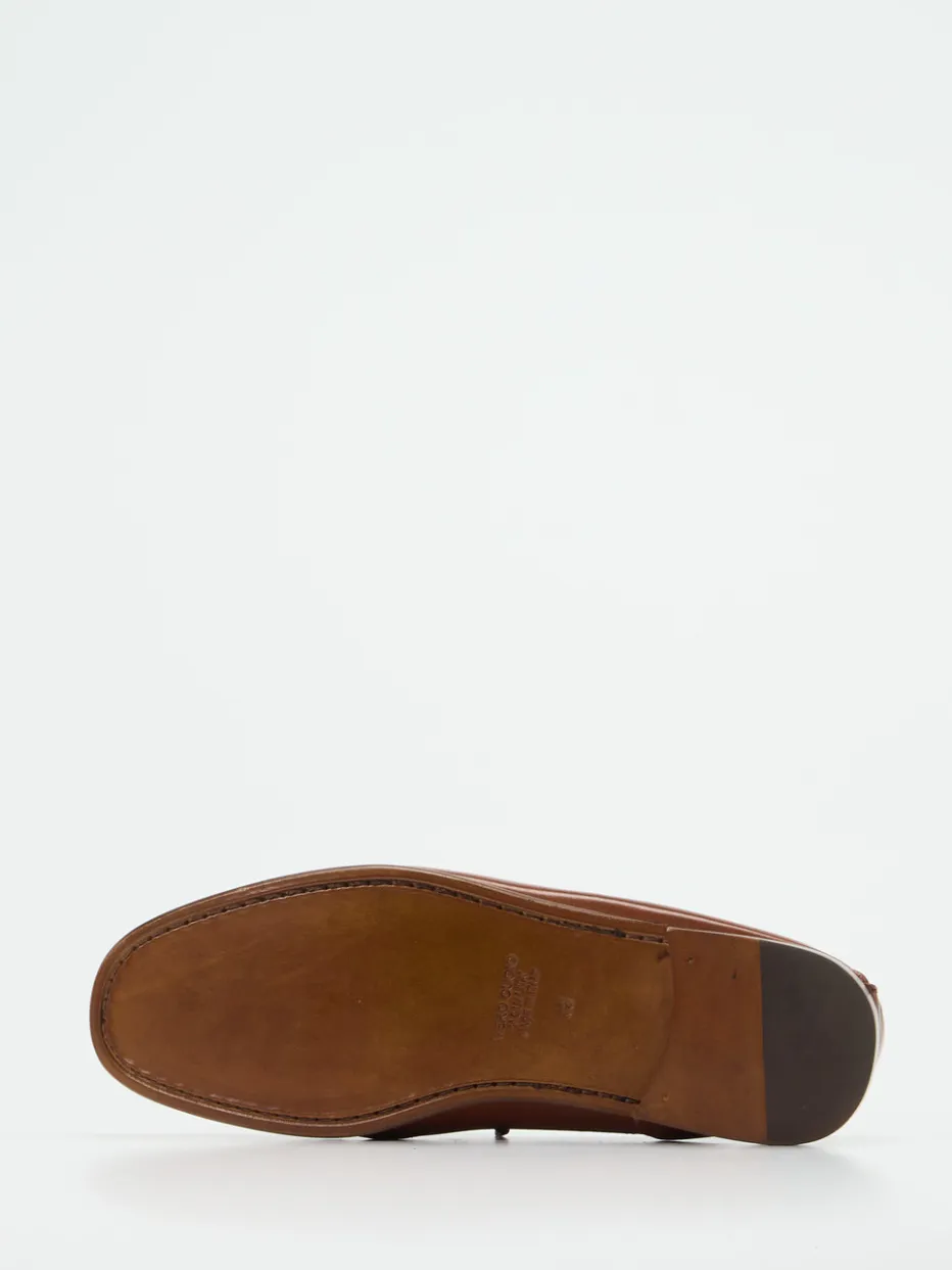 Dieser Mokassin überzeugt mit handgefertigtem Flechtleder in dezentem Braun und klassischer Silhouette – ein stilbewusster Begleiter zwischen Business und Freizeit.