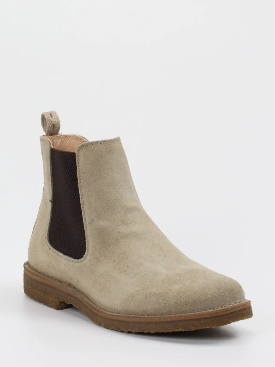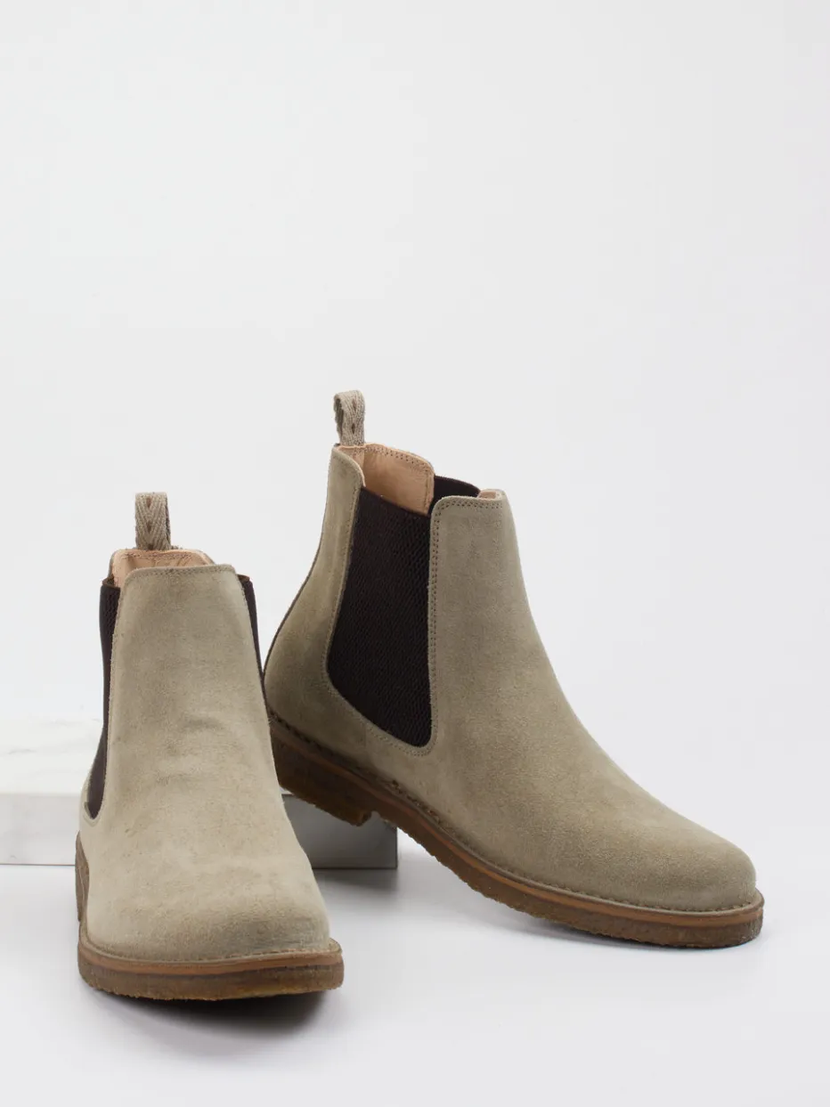 Gefertigt aus hochwertigem Veloursleder mit naturfarbener Kreppsohle verbinden diese Chelsea Boots klassische Handwerkskunst mit modernem Minimalismus.