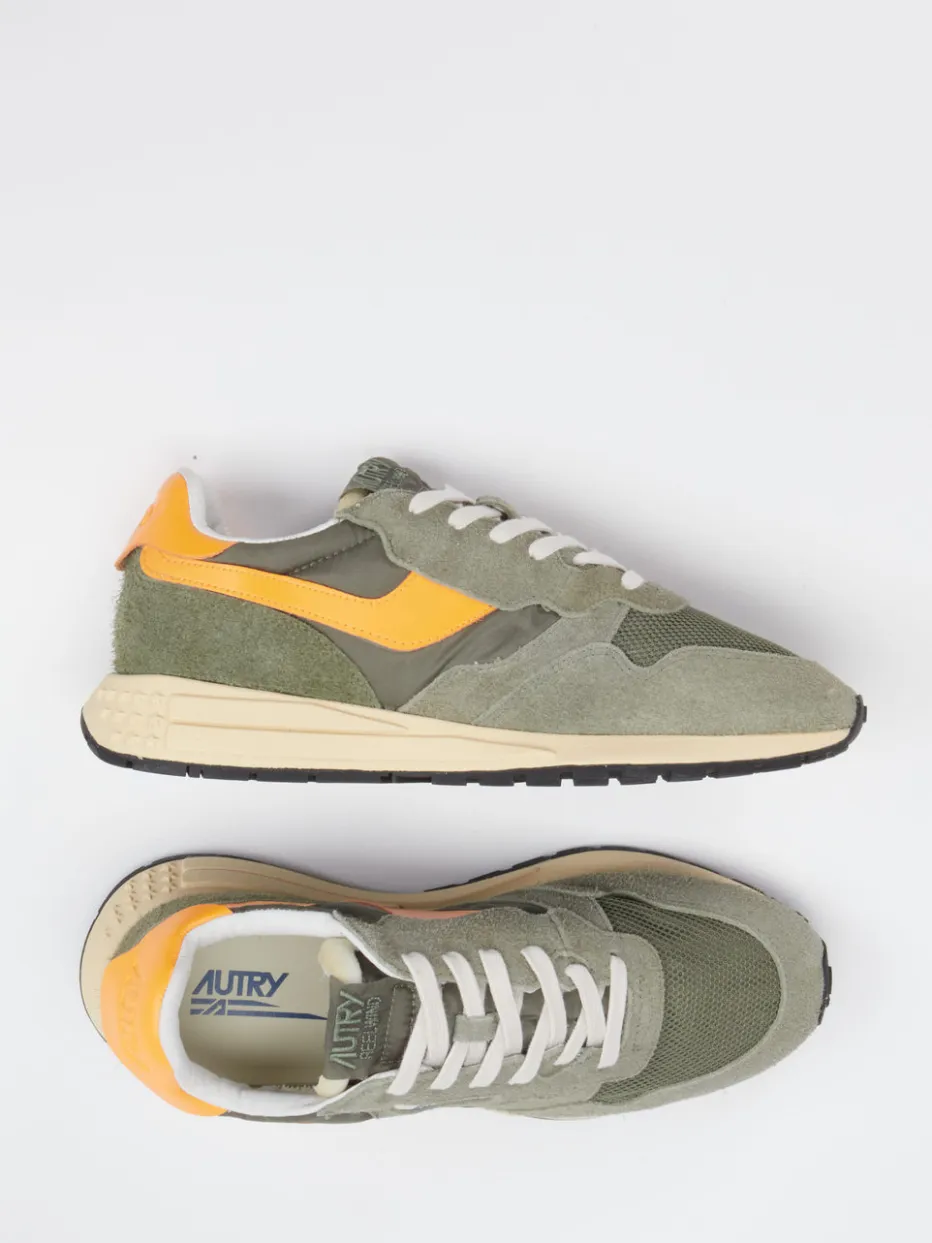Casual trifft Color-Pop. Autry präsentiert mit diesem Retro-Sneaker eine stilvolle Liaison aus Vintage-Design und Alltagstauglichkeit. Ideal für urbane Looks mit Charakter: Der olivgrüne Schuh vereint weiches Veloursleder mit atmungsaktiven Mesh-Partien und einem synthetischen Glattlederfinish. Farblich abgestimmte Beigetöne und ein kontrastierendes Orange-Logo setzen trendstarke Akzente. Die flach gehaltene Läufersilhouette mit Schaftrandpolsterung und profilierter Gummisohle bietet Komfort und Grip – auch auf langen Wegen. Inspiriert vom Lifestyle der 90er Jahre, greift der Sneaker aktuelle Streetstyle-Impulse und das „Retro Runner Revival“-Thema auf. Besonders gut kombinierbar mit locker geschnittenen Jeans oder Sportsocken. Ein sportlich-trendiger Alltagsbegleiter mit Icon-Potenzial aus dem Hause Autry.