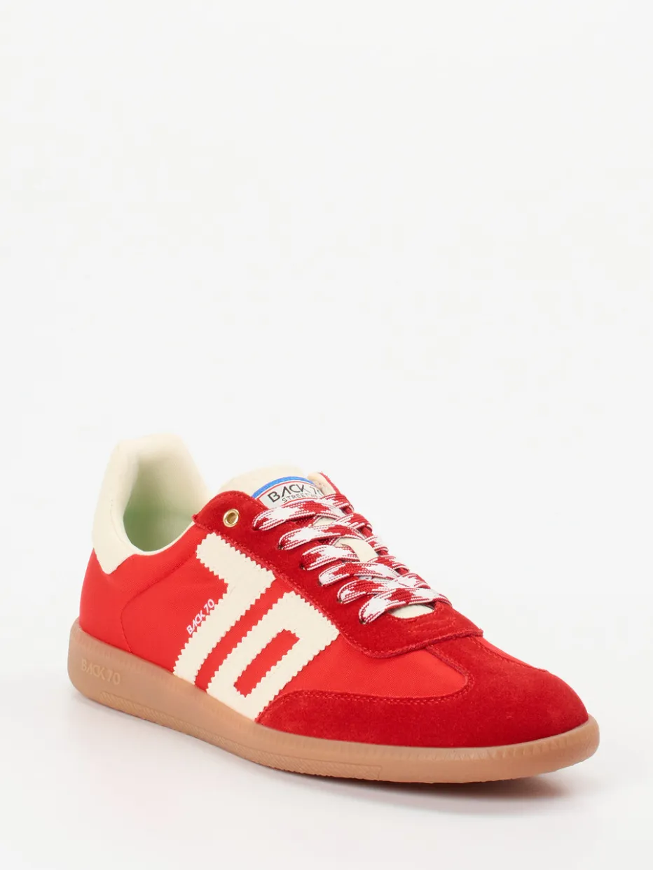 Ein durchdachter Materialmix aus rotem Meshtextil und samtig angeschliffenem Veloursleder verleiht diesem Sneaker von Back 70 seine ausdrucksstarke Anmutung mit Retro-Flair.