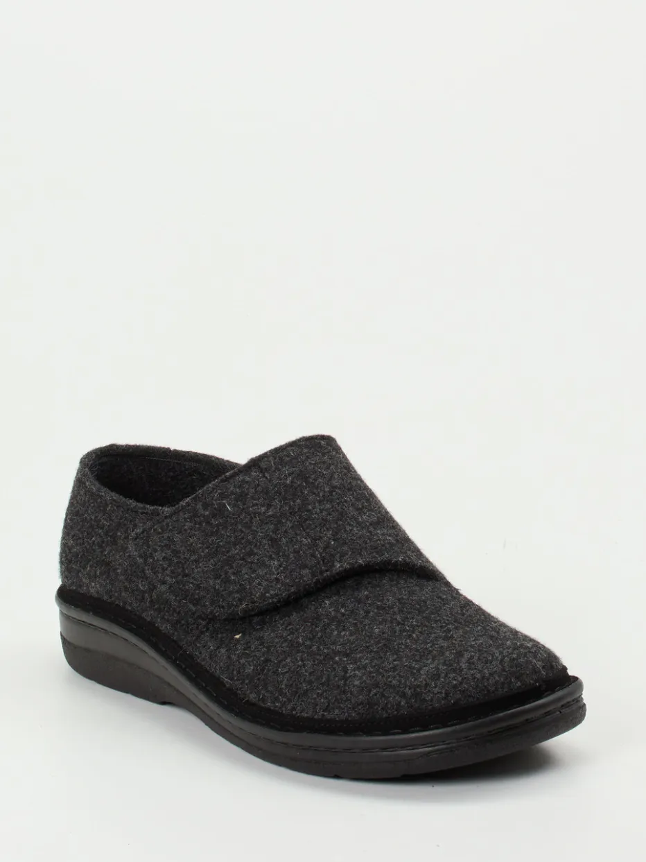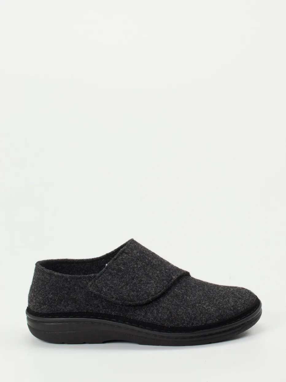 Der ergonomisch geformte Klett-Hausschuh kombiniert wärmenden Wollfilz mit einer rutschfesten PU-Sohle – ideal für komfortorientierte Loungewear-Momente im Alltag.