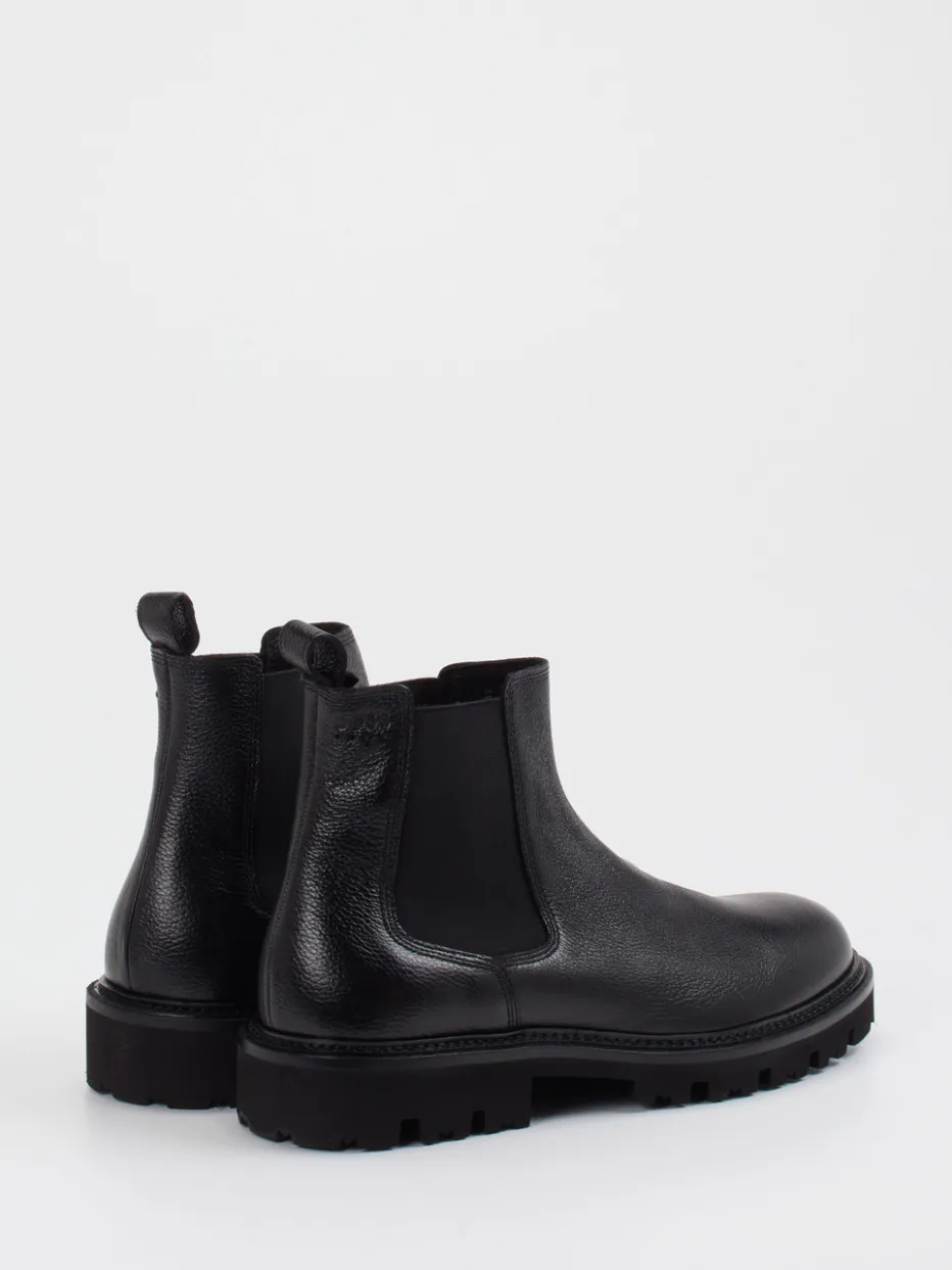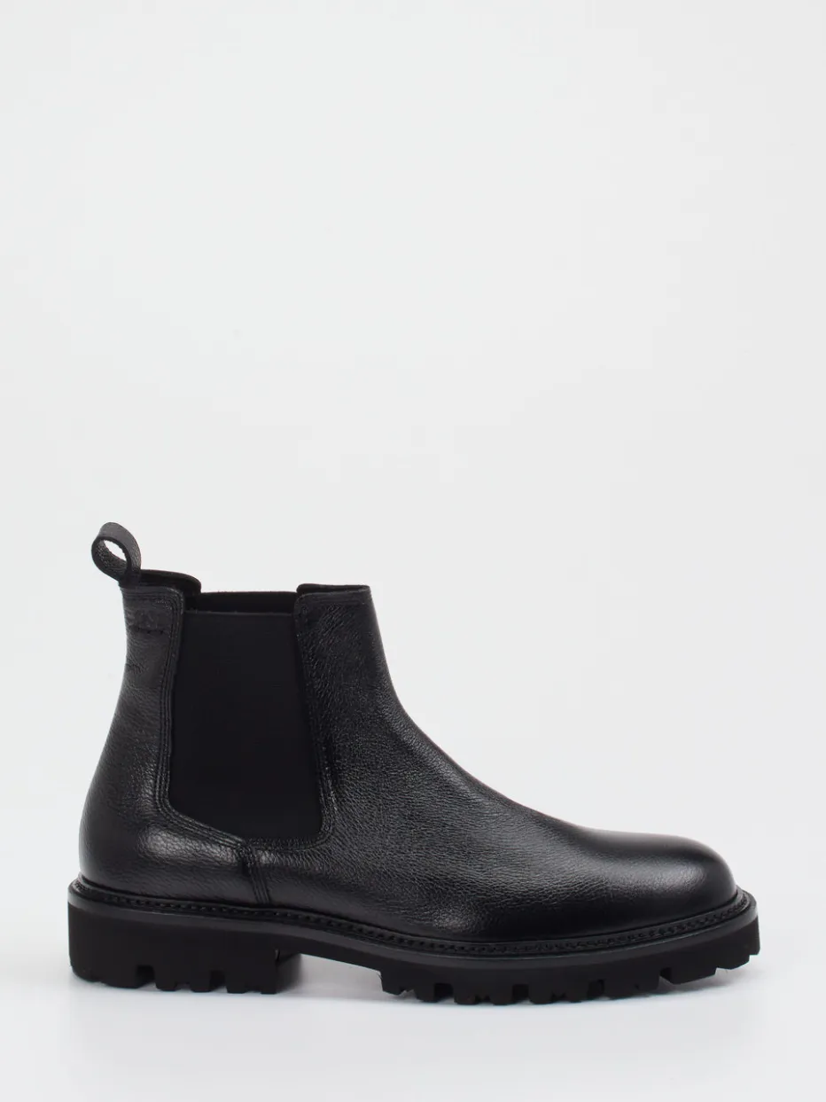 Diese Chelsea Boots von Boss verbinden fein genarbtes Kalbleder mit einer robusten Profilsohle – ein stilvoller Begleiter für urbanen Alltag und Business.