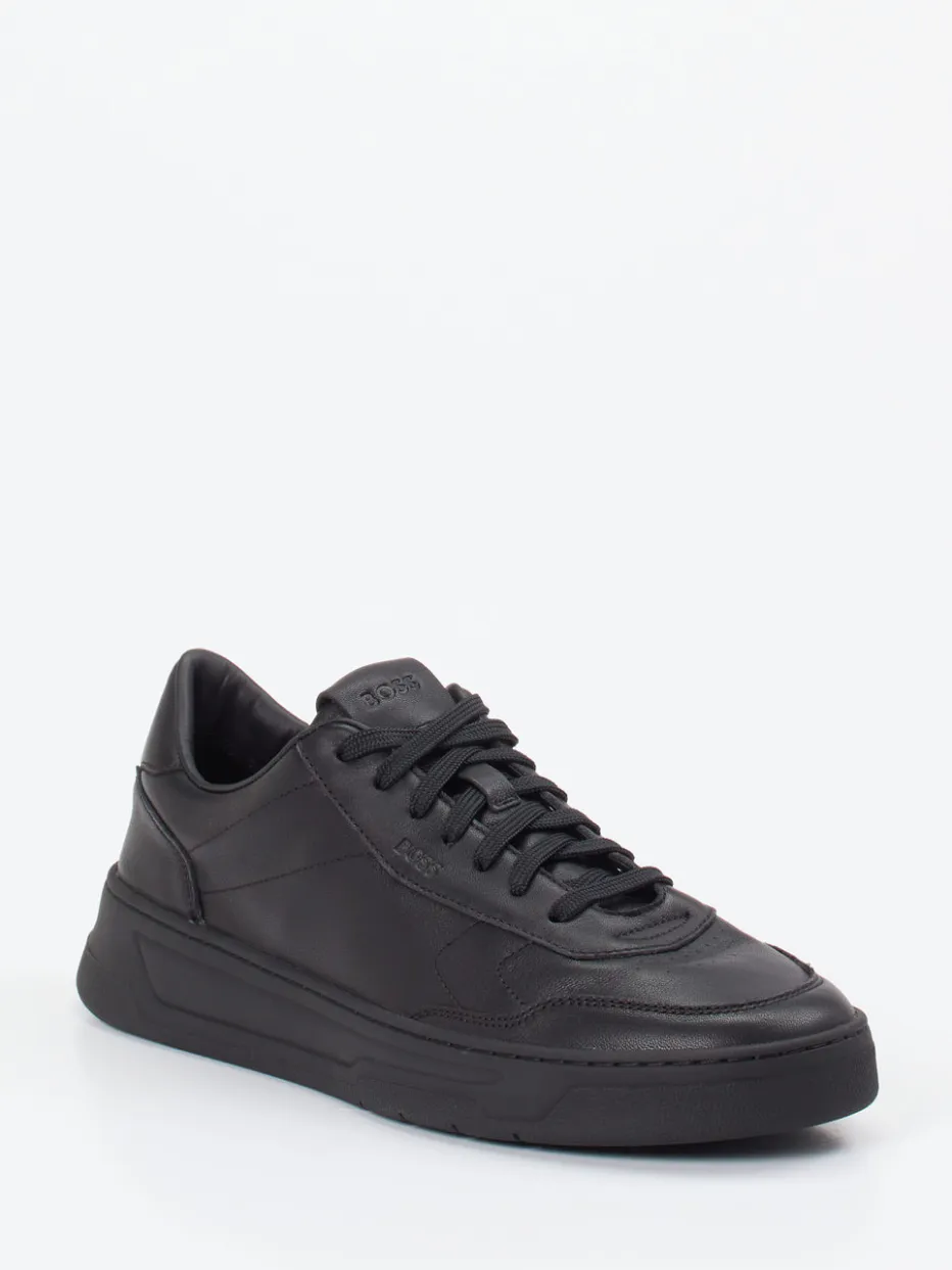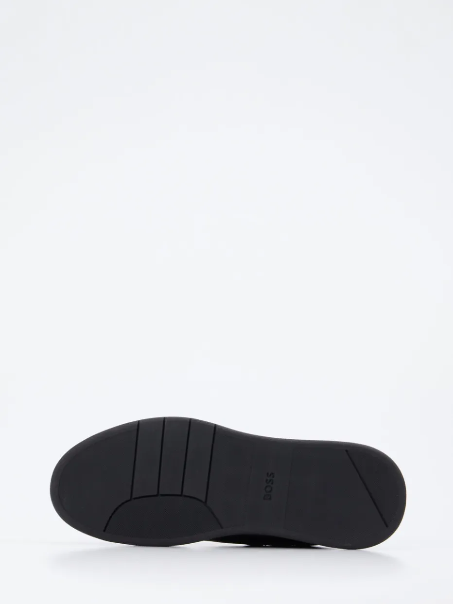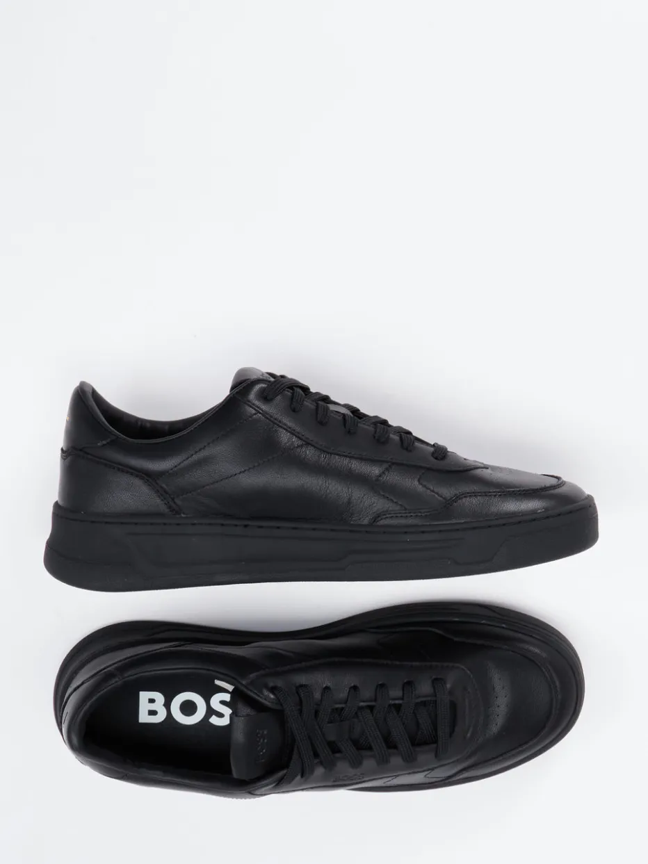 Minimalistische Eleganz im Streetwear-Stil.Der Herren-Sneaker von Boss überzeugt als Low-Top-Modell mit klaren Linien und dezenter Tonalität. Schwarz gefärbtes Kalbleder mit matter Oberfläche und tonigen Nähten prägt die cleane Ästhetik. Die klassische, abgerundete Form trifft auf eine dezente Schnürung und gepolsterten Einstieg, ergänzt durch eine modulare Gummisohle mit rutschhemmendem Profil. Leichtes Innenfutter aus Textil sowie ein herausnehmbares Fußbett sorgen für Komfort. Designstil und Silhouette orientieren sich an urbanem Minimalismus und stillen Luxus-Trends wie „Quiet Luxury“. Lässt sich ideal zu dunkler Slim-Fit-Jeans und Lederjacke kombinieren. Ein vielseitiger Allrounder mit maskuliner Klarheit und stilvollem Understatement.