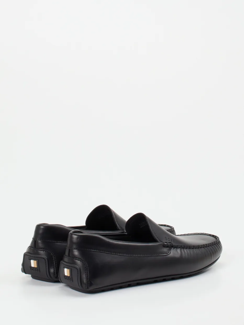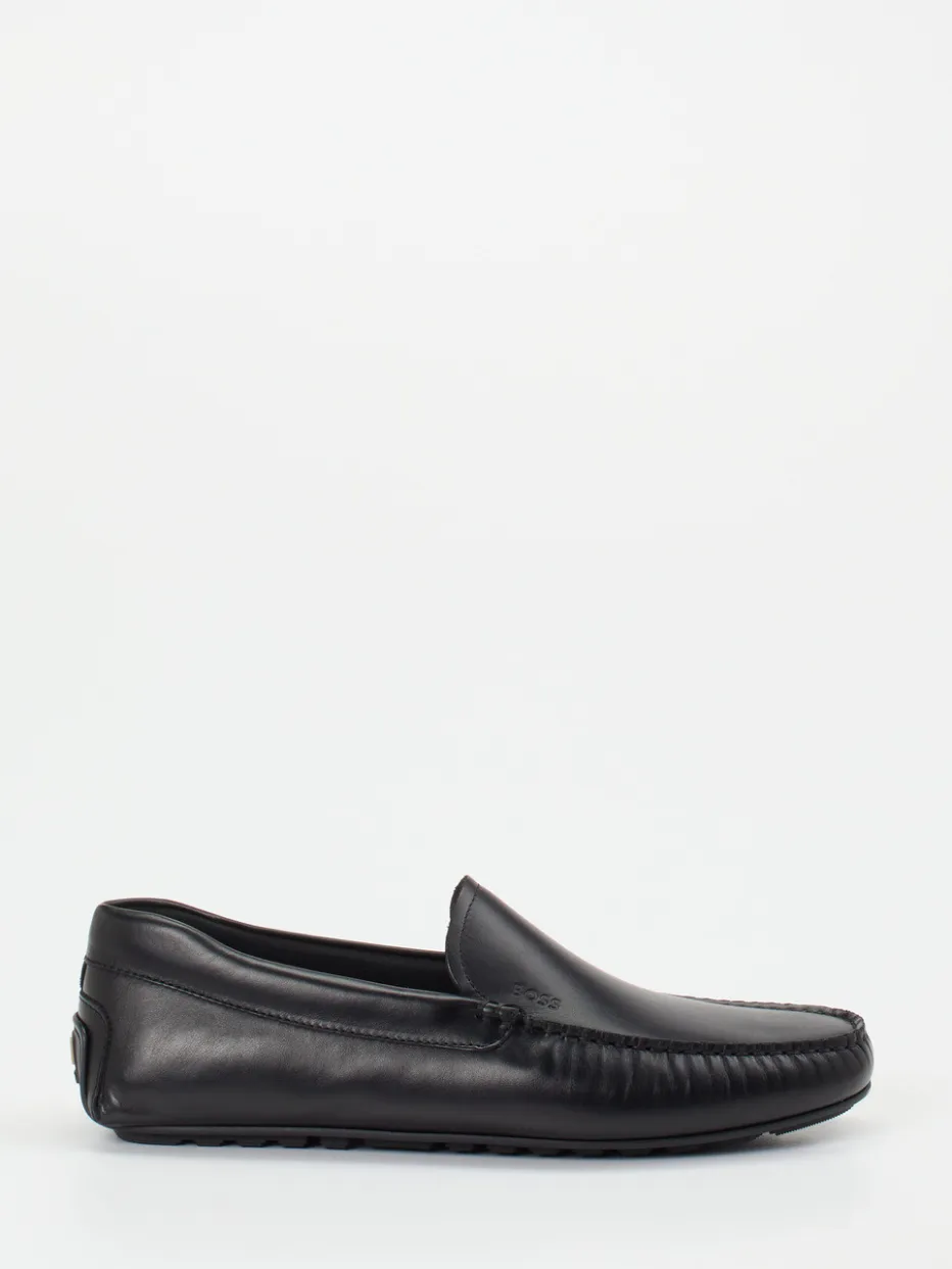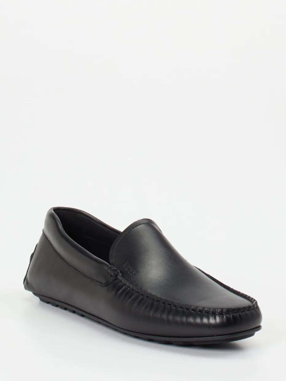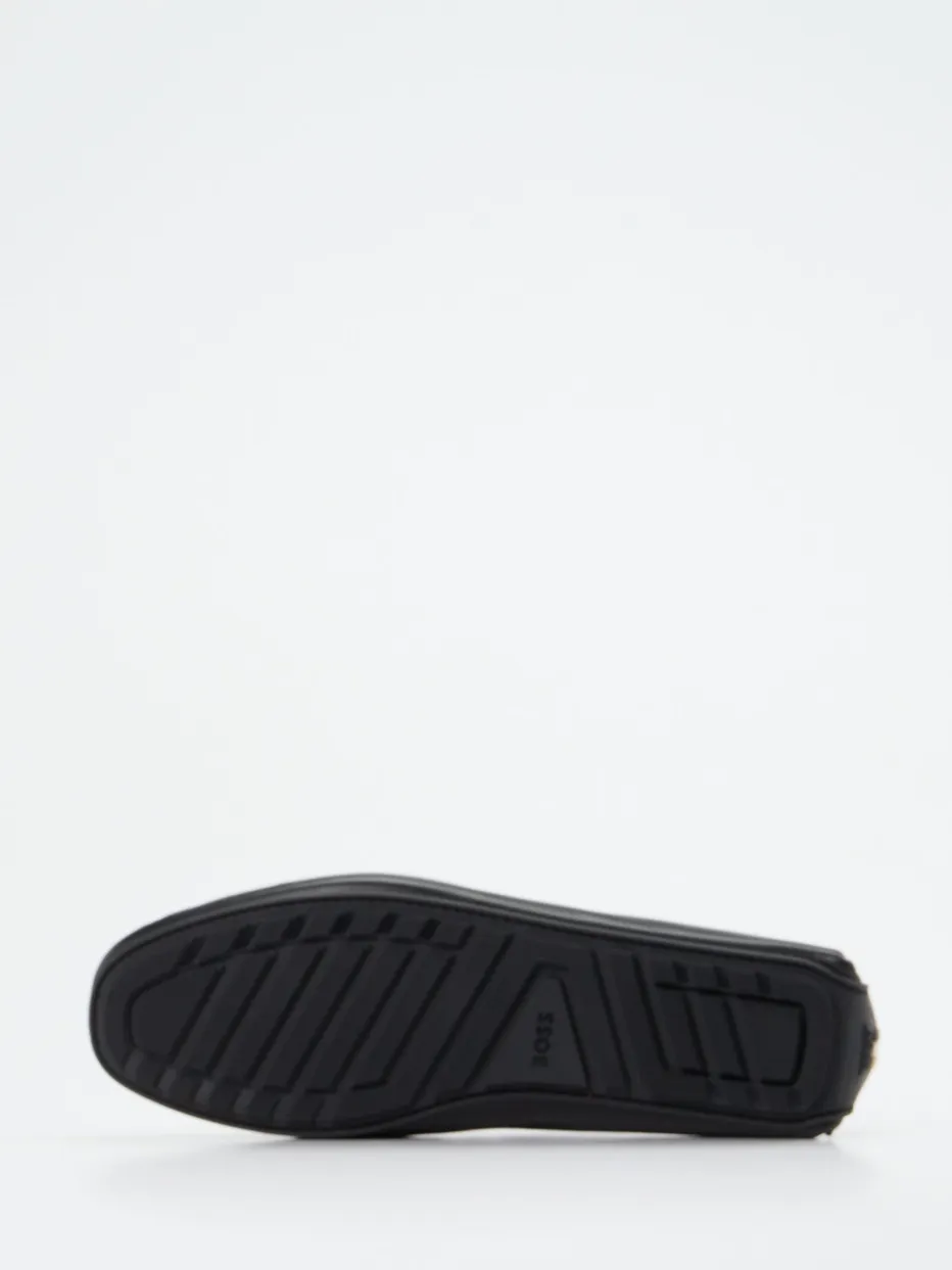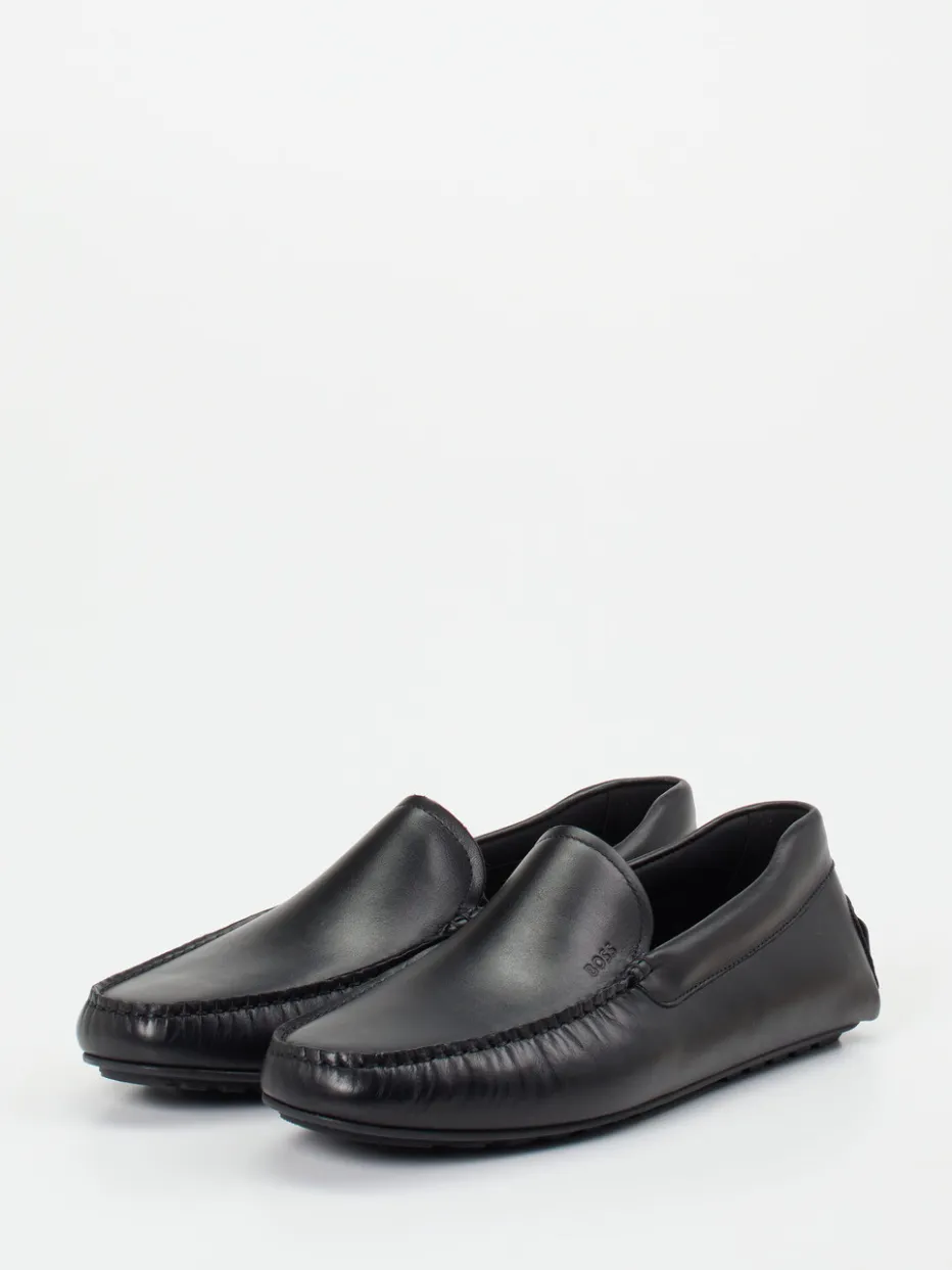 Understatement für jede Gelegenheit.Der Herren-Mokassin von Boss verbindet zeitlose Eleganz mit smarter Funktionalität. Im Büroalltag wie in der gehobenen Freizeitgarderobe punktet der Slipper durch sein hochwertiges, schwarzes Kalbleder mit matt-glatter Oberfläche. Die schmale, flache Silhouette wird von einer Ton-in-Ton-Mokassinnaht und einem geprägten Logo dezent akzentuiert. Die rutschhemmende Gummisohle mit Markenprägung bietet alltagstauglichen Komfort, während die gepolsterte Innensohle den Tragekomfort unterstreicht. Das sportlich anmutende Fersendetail rundet den „Clean Aesthetic“-Look ab. Kombiniert mit Chinos oder Anzughose entsteht ein stilvoller Minimal-Look. Ein souveräner Begleiter, der modernen Luxus zurückhaltend interpretiert.