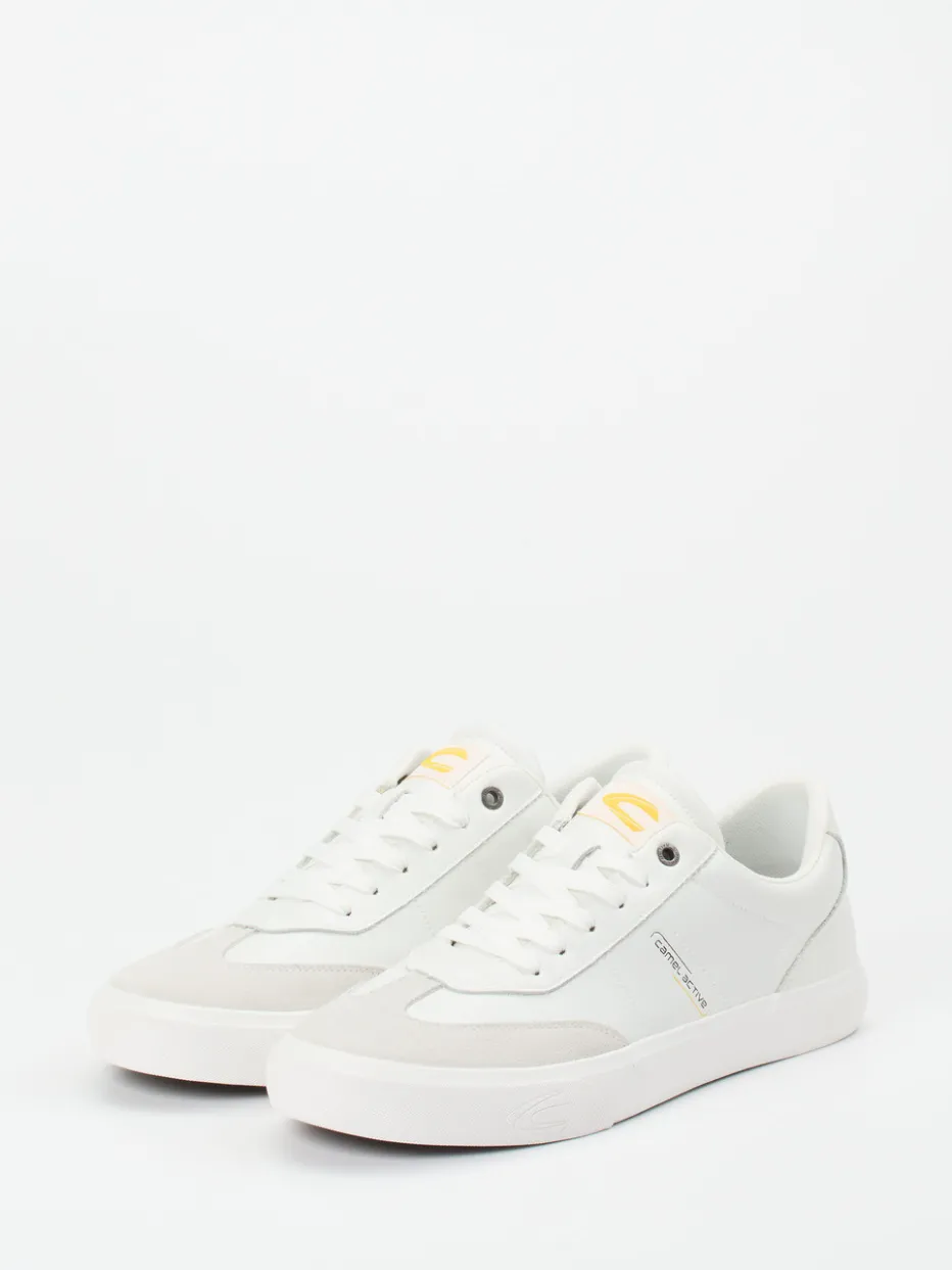 Schlichte Klasse mit Retro-Twist.Camel Active bietet mit diesem Low-Top-Sneaker ein sportlich-elegantes Modell für die Freizeit. Ideal für entspannte City-Touren oder den Alltag sorgt der Materialmix aus weißem Kalbleder und samtig angeschliffenem Veloursleder für hochwertige Haptik. Der tonige Look in Off-White wird durch hellgraue und gelbe Akzente stilvoll ergänzt. Klassisch flach geschnitten, mit gepolstertem Einstieg, Schnürung und atmungsaktivem Leder-Textilfutter verbindet der Schuh Komfort mit zurückhaltender Eleganz. Design-Details wie das dezente Seitenlogo und die kontrastierende Zunge greifen den „Quiet Luxury“-Trend auf. Kombinierbar zu Chinos, Shorts oder Jeans. Ein Sneaker mit feinem Anspruch, inspiriert von urbaner Minimalästhetik.