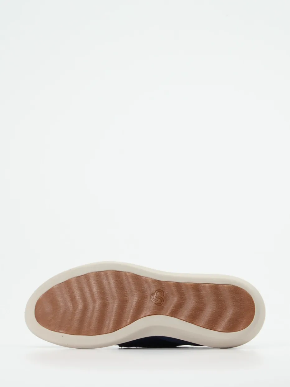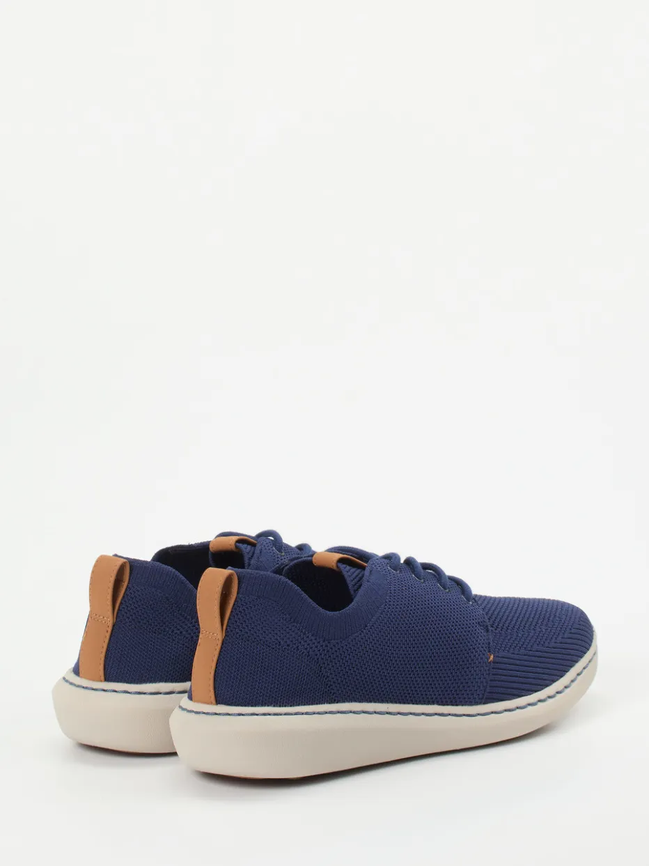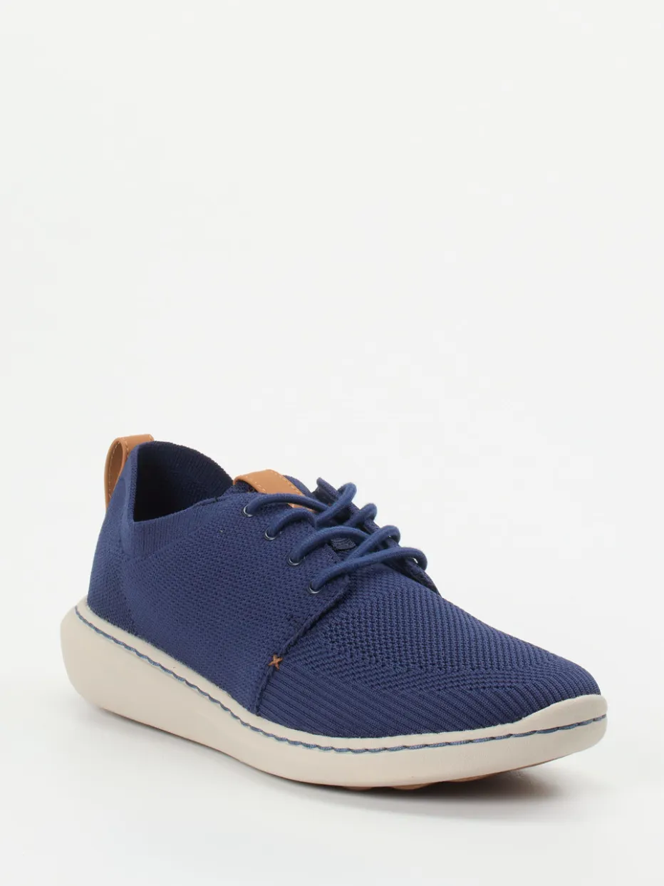 Textil-Komfort für entspannte Sommertage.Clarks bietet mit diesem Herren-Freizeitsneaker eine stilvolle Option für Alltag und Reise. Das flexible, marineblaue Obermaterial aus Textil ist gestrickt und wirkt dank hellbrauner Kunstleder-Details modern und sportiv zugleich. Die Gummisohle mit sichtbarer Ziernaht ist rutschhemmend und unterstreicht die minimalistische Ästhetik. Schnürung und Fersenschlaufe ergänzen das funktionale Design. Ideal für stilbewusste Casual-Looks im Soft Comfort Trend, besonders in Kombination mit leichten Sommerhosen. Clarks überzeugt mit Leichtigkeit, atmungsaktiven Materialien und elegant-reduzierter Formensprache.