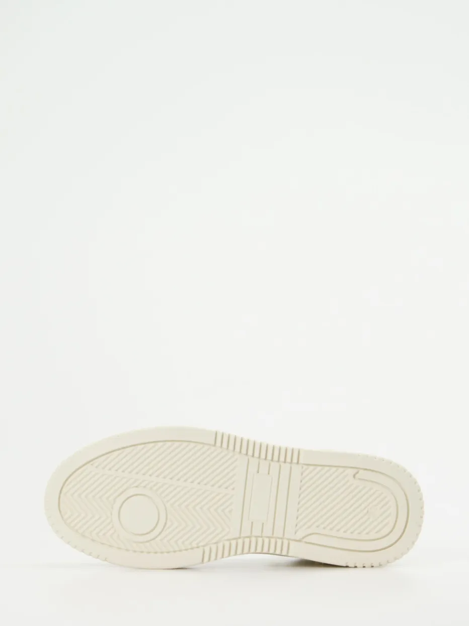 Minimalismus trifft Retro-Court-Charme.Copenhagen interpretiert den klassischen Mid-Top Sneaker modern und dezent. Ideal für entspannte City-Tage, überzeugt dieses Unisex-Modell mit glattem Kalbleder, ergänzt durch samtige Veloursleder-Applikationen und weiches Textilfutter in Frottee-Optik. Die cremeweiße Farbgebung, kombiniert mit Elfenbein- und Weißnuancen, unterstreicht den reduzierten Look – akzentuiert durch Ton-in-Ton-Logo und perforierte Zehenkappe. Der gepolsterte Schaftrand und die Gummisohle bieten Komfort bei urbaner Nutzung. Trendgerecht zwischen Streetwear und Quiet Luxury, passt der Schuh ideal zu Jogpants oder Oversized-Hoodie. Copenhagen setzt hier auf dezente Details und markentypische Qualität im Streetstyle-Format.