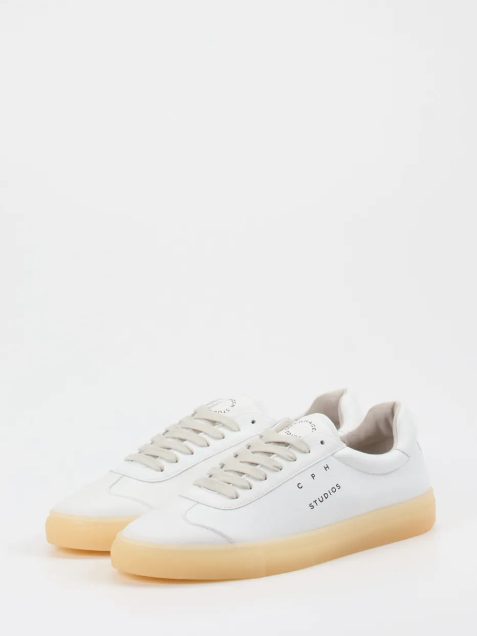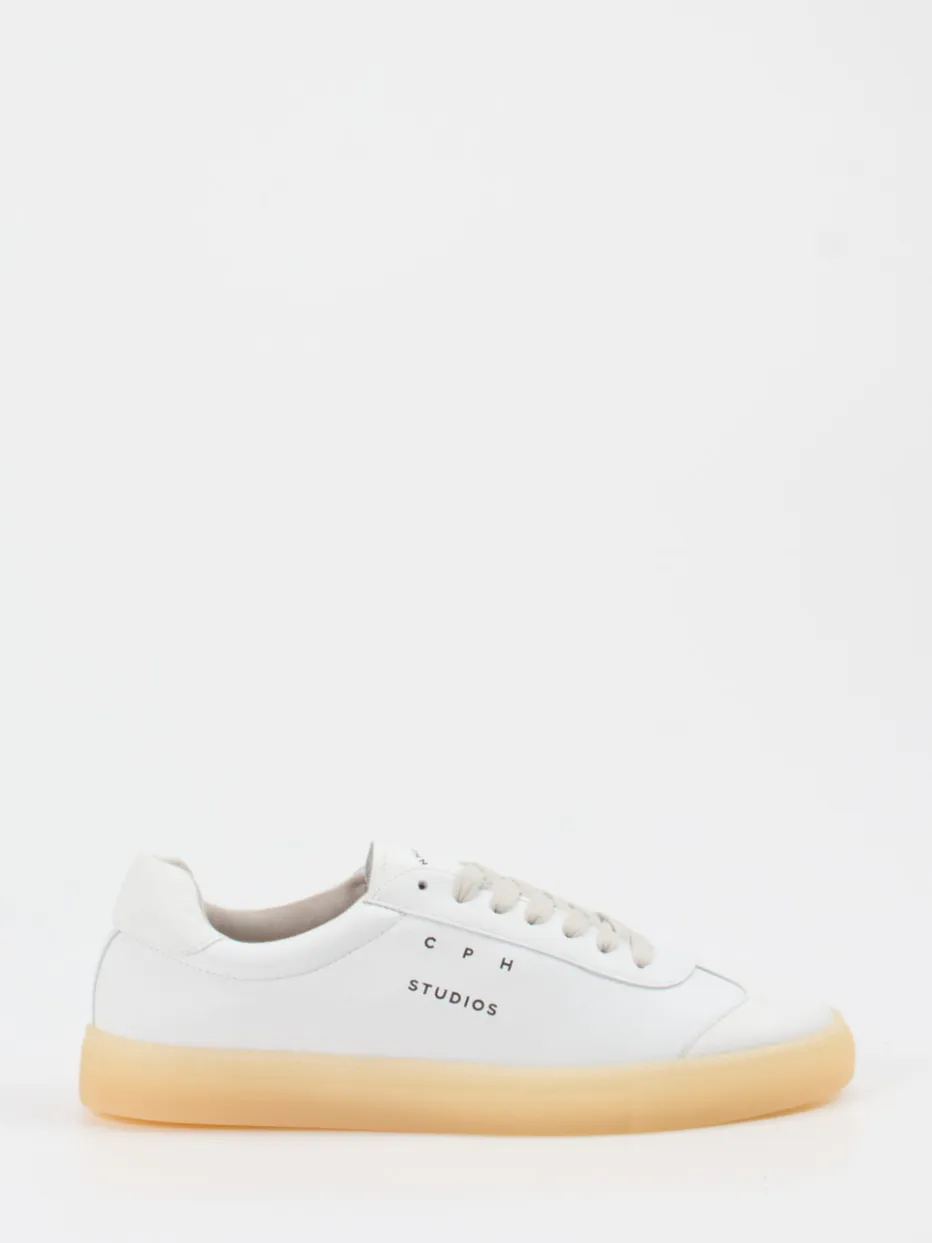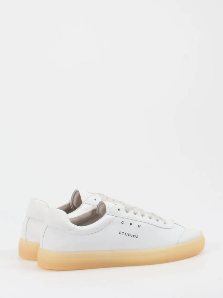 Klares Design, edle Materialien: Dieser Sneaker von Copenhagen vereint schneeweißes Kalbleder mit einer naturfarbenen Gummisohle im Trendstil der Saison.