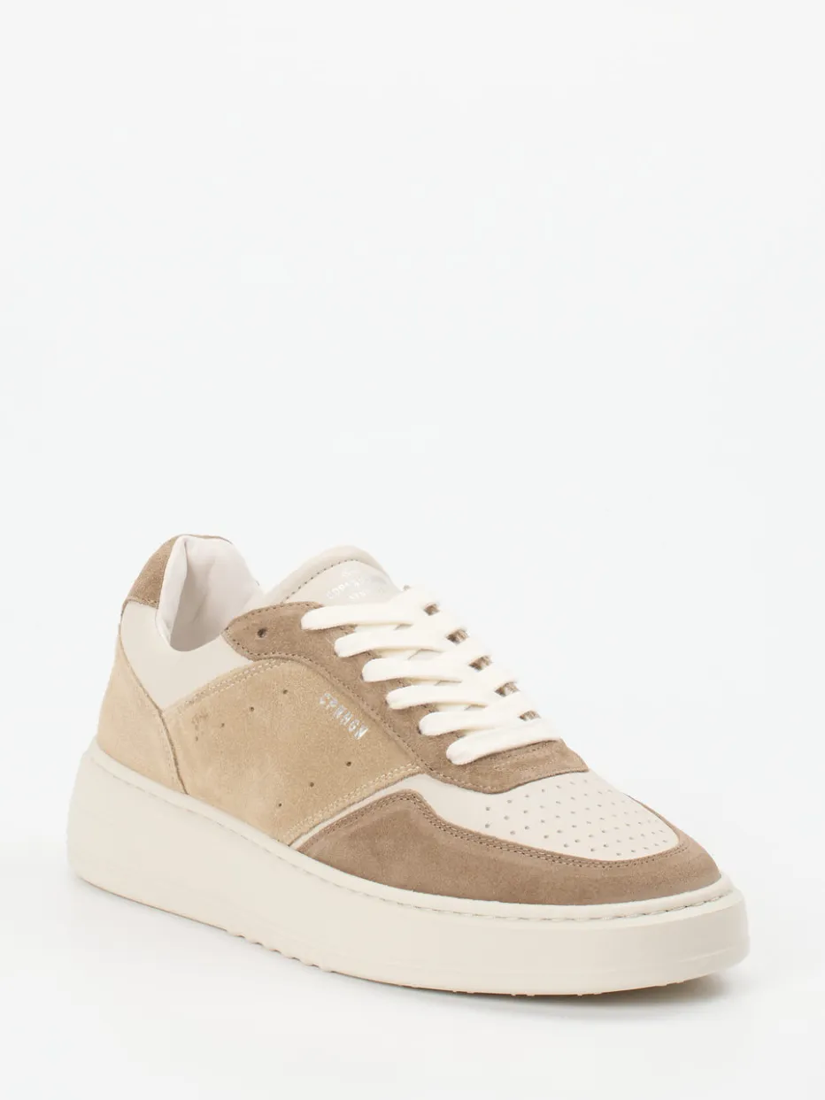 Raffiniert kombiniert, angenehm zu tragen.Copenhagen präsentiert einen lässigen Low-Top Sneaker mit sportlich-klassischer Silhouette. Ideal für Freizeit und entspannte Alltagsmomente: Das Zusammenspiel aus glattem Kalbleder und samtig angerautem Veloursleder sorgt für haptischen Reiz und visuelle Tiefe. In Cremeweiß, Sandbeige und Taupe gehalten, greift das Modell aktuelle Natural-Tones-Trends auf. Die perforierte Zehenpartie und breite Sohle bieten Komfort mit urbanem Twist. Das gepolsterte Lederfutter rundet das Trageerlebnis in jeder Hinsicht ab. Ein smarter Sneaker mit charakteristischem Markencharme und stilvoller Unisex-Attitüde.
