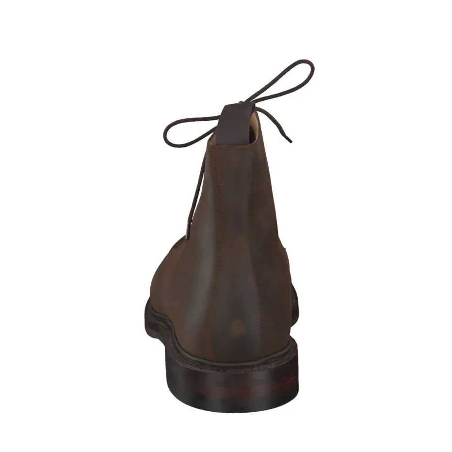 Für Tage, an denen Komfort und Stabilität gefragt sind, sorgt das sorgfältig verarbeitete Veloursleder für einen authentischen Auftritt. Die dunkelbraune Farbe unterstreicht den maskulin-zeitlosen Stil, matt strukturiert und mit Ton-in-Ton-Nähten versehen. Eine robuste Gummisohle mit Profil bietet Trittsicherheit im Alltag und auf herbstlichen Wegen. Details wie Metallösen und eine Zuglasche hinten verweisen auf funktionale Heritage-Einflüsse. Harmoniert ideal mit Wollhosen und groben Strickwaren.