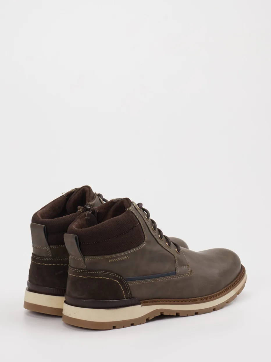 Strapazierfähiger Look für urbane Abenteuer. Die Herren-Schnürboots von Cypres Soft setzen auf eine Kombination aus Funktionalität und Stil. Für kalte Tage in der Stadt oder entspannte Wochenendausflüge bieten diese knöchelhohen Boots dank Synthetik-Obermaterial und Textilfutter angenehmen Tragekomfort. Die Hauptfarbe Schlammgrau wird durch dunkelbraune und beige Akzente modern ergänzt. Praktische Details wie der seitliche Reißverschluss, Kontrastnähte und eine gepolsterte Schaftpartie runden das durchdachte Design ab. Die rutschhemmende Gummisohle mit starkem Profil verleiht festen Halt – ideal für den Utility Style der Saison. Passt bestens zu Thermojeans und wetterfesten Jacken. Robustheit trifft auf Cypres Soft typischen Komfort.