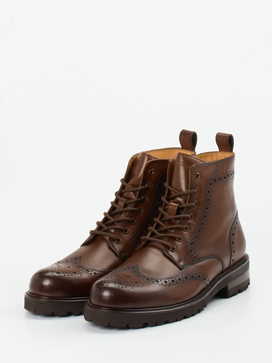 Die Kombination aus kastanienbraunem Kalbleder, traditioneller Brogue-Lochung und moderner Profilsohle verleiht diesen Boots eine elegante Alltagstauglichkeit.
