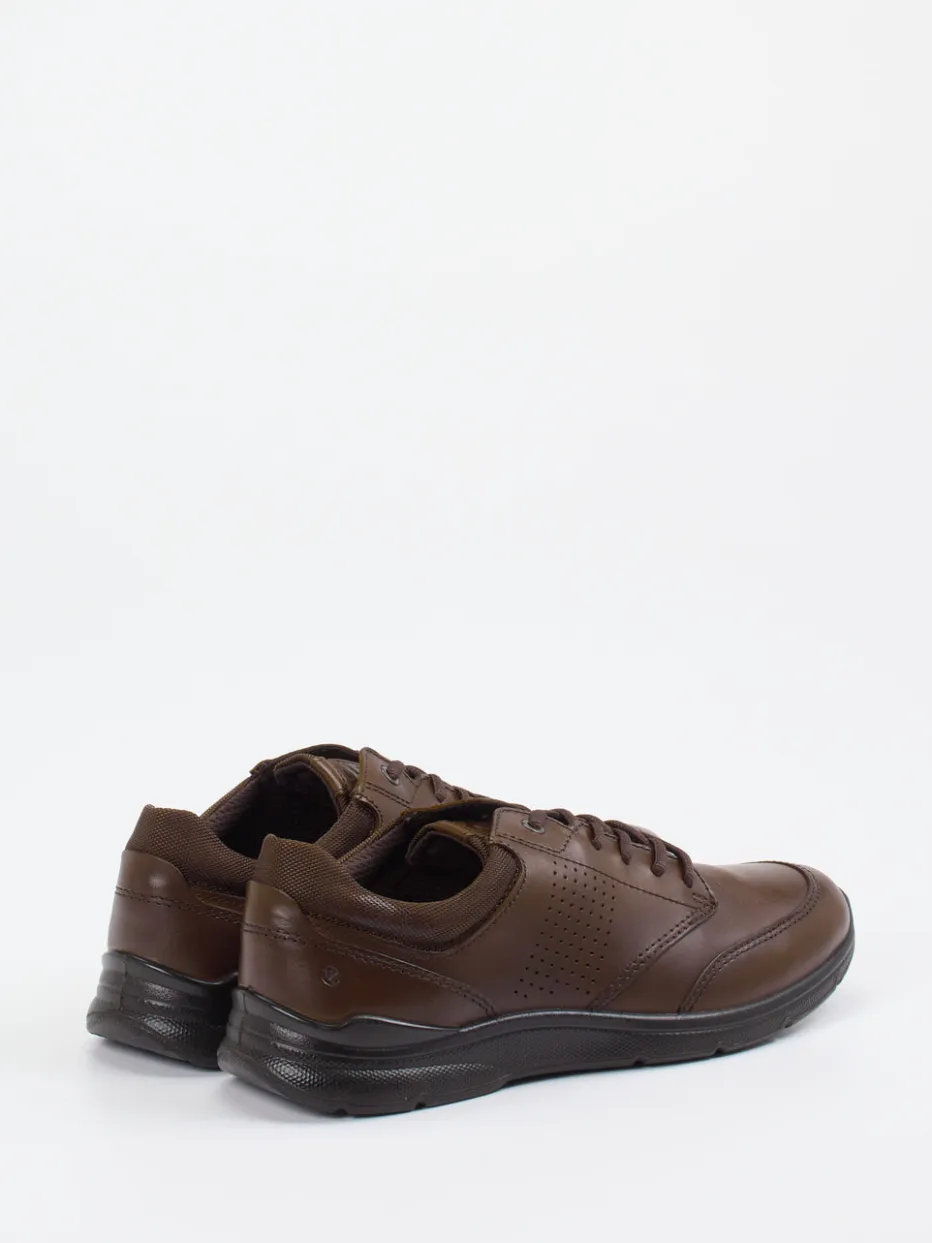 Stilsicher durch den Alltag.Ecco präsentiert mit diesem Bequem-Sneaker ein rundum durchdachtes Herrenschuhmodell. Für den Büroalltag oder den stilvollen Freizeit-Look bietet der braune Schnürschuh in Glattlederqualität mit glatter, dezent glänzender Oberfläche optimalen Tragekomfort. Durch seitliche Perforationen, tonale Steppnähte und einen weich gepolsterten Schaftrand wirkt das Design funktional und modern. Die leichte Gummisohle mit Fluidform-Technologie folgt ergonomisch dem Fuß und bietet sicheren Halt. Innen sorgt atmungsaktives Mesh-Futter für ein angenehmes Klima. Ein zuverlässiger Begleiter mit skandinavischer Klarheit und zurückhaltender Eleganz.