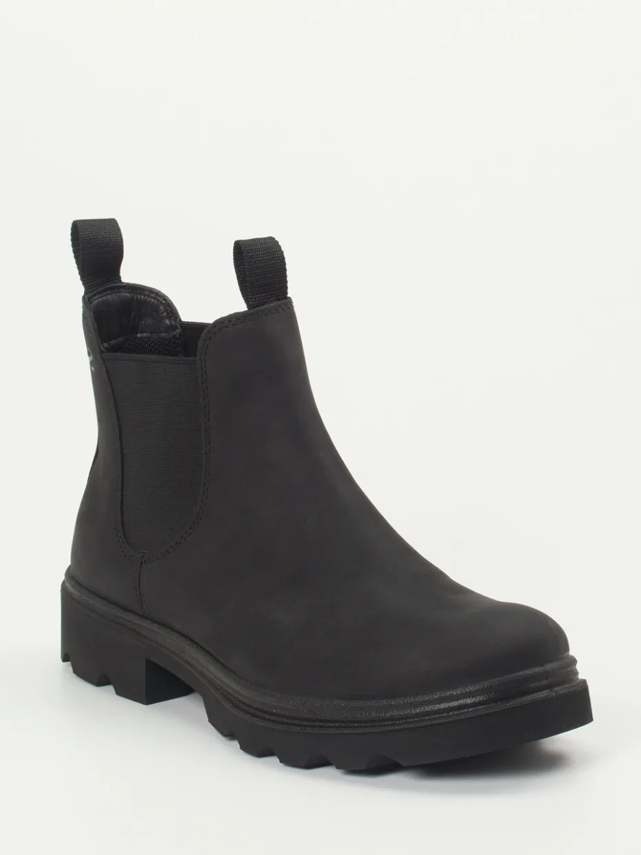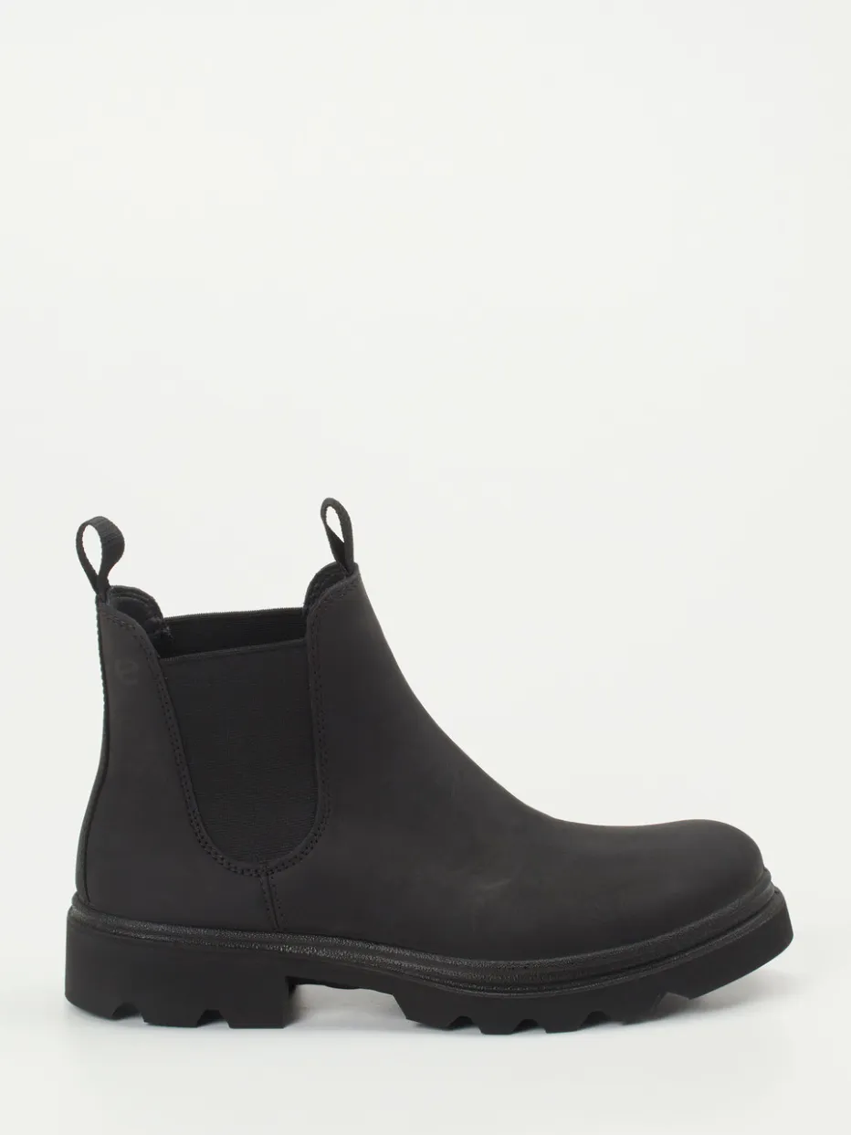 Minimalistisch. Praktisch. Alltagstauglich.Die Chelsea Boots von Ecco interpretieren klassische Outdoor-Tauglichkeit im urbanen Stil. Für widrige Herbsttage oder lange Städtespaziergänge – das schwarze Nubukleder mit matter Oberfläche ist wasserabweisend und pflegeleicht. Die seitlichen Elasteinsätze und Textil-Zuglaschen erleichtern den Einstieg, das gepolsterte, wechselbare Fußbett sorgt für zusätzlichen Komfort. Die robuste Gummisohle mit ausgeprägtem Profil verleiht Standfestigkeit und spiegelt zugleich den „Chunky Sole“-Trend wider. Silhouette und Finish folgen dem „Quiet Luxury“-Zeitgeist mit klarer, zurückhaltender Formgebung. Funktional kombinierbar mit Thermo-Leggings oder Urban Outdoor-Looks. Ecco setzt auf kompromisslosen Komfort in klarer Formsprache.