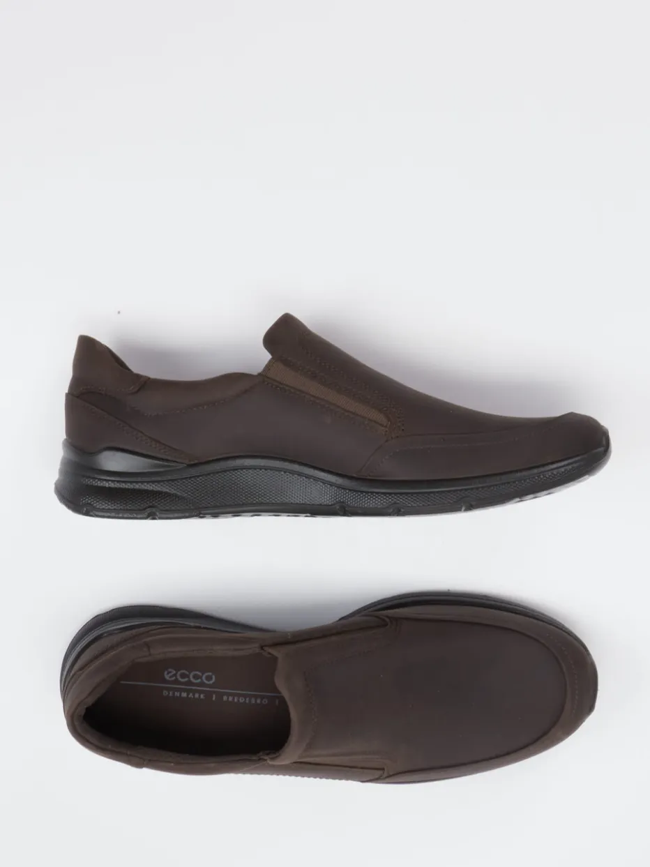 Der Komfort-Slipper von Ecco kombiniert weiches Nubukleder mit elastischen Einsätzen und gepolstertem Einstieg. Ideal für stilbewusste Herren, die Wert auf funktionales Design legen.