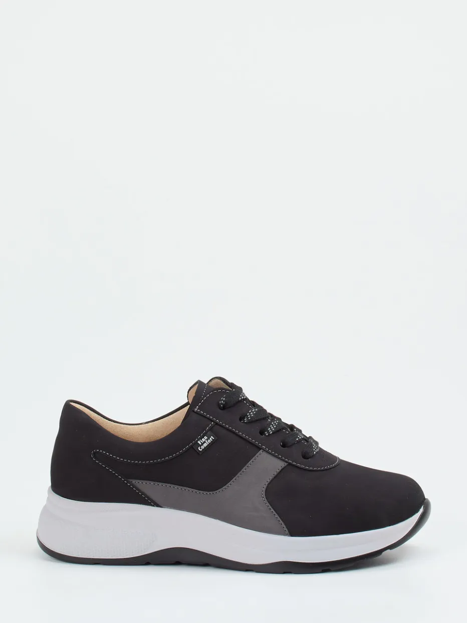 Stilvoll. Stabil. Alltagstauglich.Finn Comfort präsentiert mit diesem Komfort-Sneaker ein Damenmodell für entspannte Tage. Ob bei Spaziergängen oder längeren Strecken im Alltag – das Paar überzeugt durch weiches Nubukleder mit matt samtiger Haptik, einem gepolsterten Schaftrand und austauschbarer Korkleder-Decksohle. Schwarz-graue Töne, dezente Kontrastnähte und zweifarbige Schnürsenkel fügen sich in ein reduziertes, aber modernes Design. Die rutschhemmende Gummisohle mit integriertem Shock-Absorber bietet zusätzliche Trittsicherheit. Streetwear-inspiriert mit einem Fokus auf Normcore und Tragekomfort. Charakteristischer Komfortstil von Finn Comfort, konsequent funktional umgesetzt.