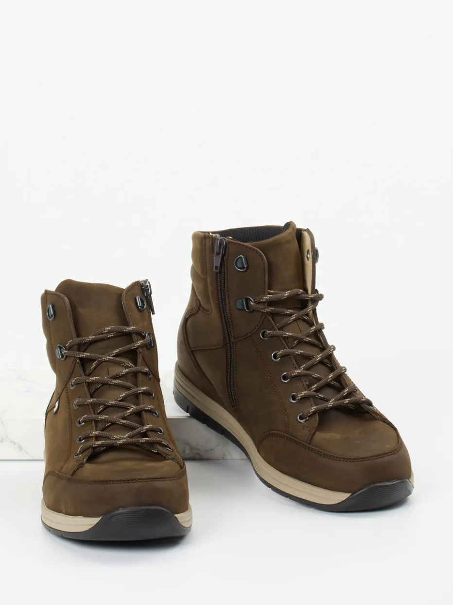 Für aktive Tage bei kühlem Wetter.Finn Comfort bietet mit diesen Outdoor-Stiefeletten für Herren einen robusten Begleiter für Freizeit und Stadtwanderungen. Das braune Fettleder ist wetterbeständig und wird durch eine matte Oberfläche sowie tonige Steppnähte charakterisiert. Die Kombination aus Schnürung mit Metallösen und seitlichem Reißverschluss sorgt für Komfort beim An- und Ausziehen. Der weich gepolsterte Schaft entlastet den Knöchelbereich, während die flexible Gummisohle mit griffigem Profil sicheren Halt bietet. Der casual geprägte Stil lässt sich gut zu Outdoor-Jacken oder Jeans kombinieren. Urbane Funktionalität trifft auf markentypischen Komfort mit orthopädischem Mehrwert.