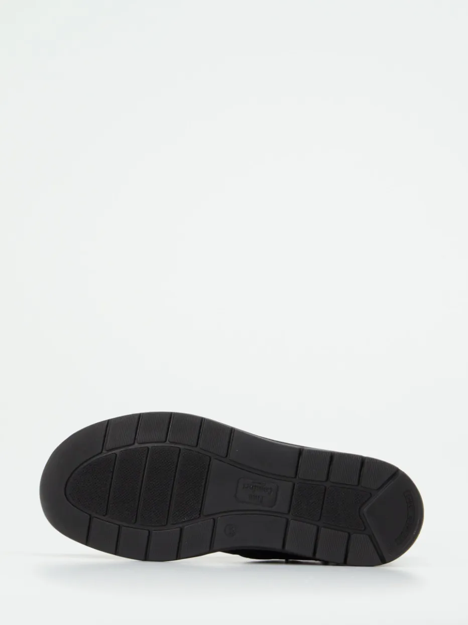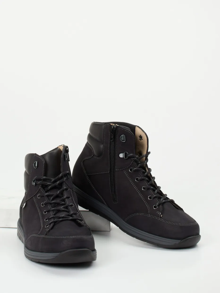 Die Herrenschuhe von Finn Comfort zeigen sich in Form knöchelhoher Stiefeletten aus schwarzem Nubukleder.