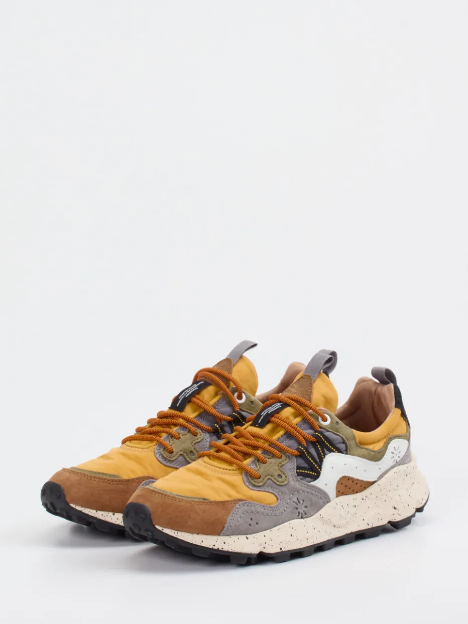 Funktion trifft auf Stil.Flower Mountain zeigt sich mit diesem Trail-Sneaker stilbewusst und funktional zugleich. Für urbane Entdeckertouren oder den Spaziergang am Stadtrand bietet das Modell eine perfekte Balance aus Komfort und Ausdruck. Der Materialmix aus samtig angeschliffenem Veloursleder und strukturiertem Nylon sorgt für eine angenehme Haptik und technische Anmutung. Das dominante Senfgelb wird durch braune, graue und weiße Partien kontrastreich ergänzt. Auffällige Designdetails wie die gesprenkelte Zwischensohle, kontrastfarbene Ziernähte und eine markante Zugschlaufe runden den Gorpcore-Look stimmig ab. Die griffig profilierte Gummisohle bietet festen Halt auch auf unebenem Terrain. Gut kombinierbar mit Cargohose und Funktionsjacke. Ein sportlich-trendorientiertes Highlight mit komfortabler Kork-Innensohle und modischer Outdoor-DNA.