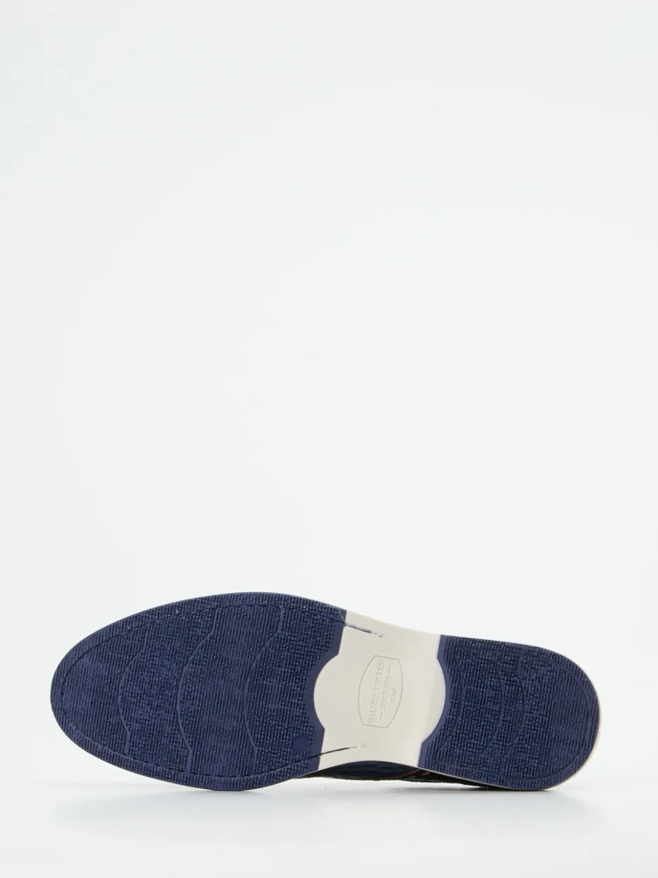 Dieser Herrenschuh kombiniert edles Kalbleder mit Krokoprägung und sportlicher Silhouette – ein stilvoller Akzent für moderne Business- und Freizeit-Outfits.