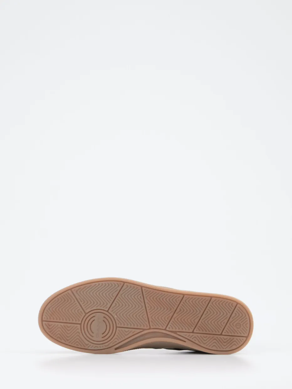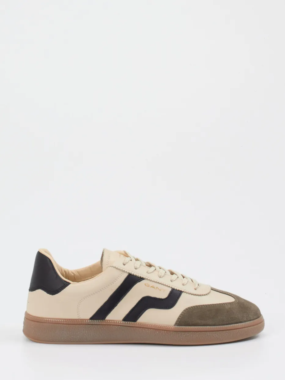 Unaufgeregt stilvoll im Retro-Look.Gant präsentiert einen Herren-Sneaker in klassisch flacher Silhouette, der Vintage-Flair mit dezenter Raffinesse verbindet. Ideal für stilbewusste Freizeitmomente vereint der Sneaker samtig angeschliffenes Veloursleder mit glattem Leder – beide in harmonischen Beigetönen. Akzente in Olivbraun und Schwarz ergänzen das dezente Farbschema, während die Ton-in-Ton-Nähte und ein goldfarbener Logoprint zeitlose Eleganz ausstrahlen. Die rutschhemmende Gummisohle, die verstärkte Fersenkappe und die klassische Schnürung bieten Komfort und Stabilität. Ein subtiler Begleiter für urbane Looks im Zeichen des Quiet Luxury. Der Sneaker kombiniert GANTs designorientierte Tradition mit langlebiger Lederqualität.