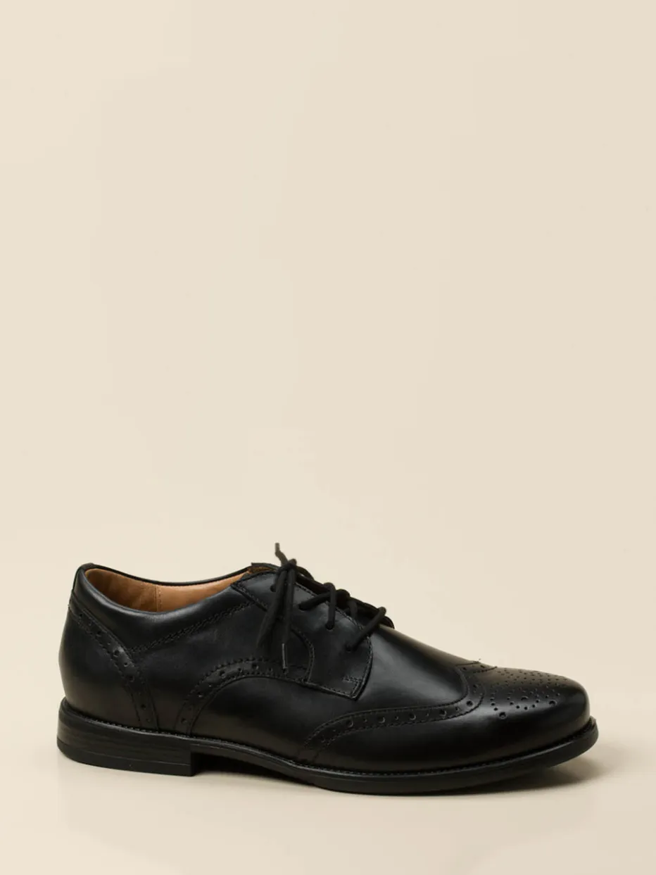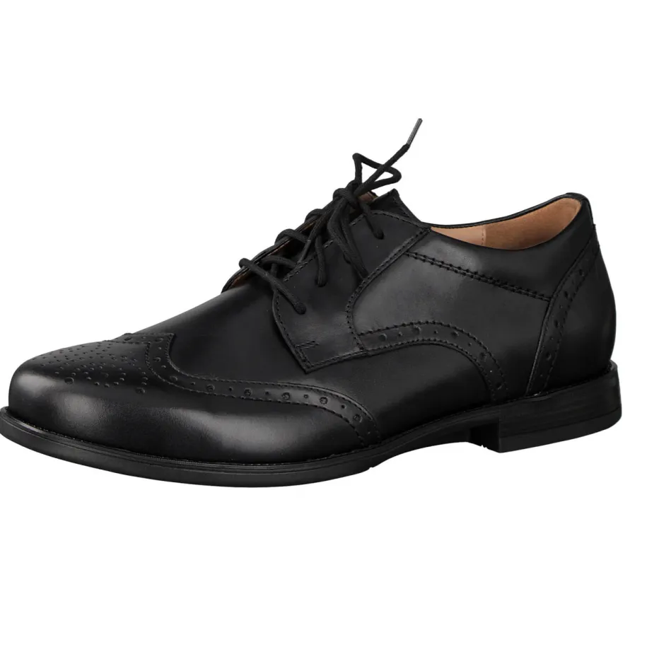 Ideal für lange Tage im Office oder stilvolle Events überzeugt das Modell durch hochwertiges Kalbleder mit matt-glatter Oberfläche und edlen Brogue-Details. Der schwarze Schnürschuh zeigt eine geschwungene Silhouette mit Ton-in-Ton-Nähten, markanter Flügelkappe und stabiler Fersenkappe. Innen punktet er mit Lederfutter und orthopädischem Vario-Korkfußbett, das bei Bedarf herausnehmbar ist. Die Gummisohle bietet Abrolldynamik und Gelenkschonung. Dezente Eleganz, passend zum ‚Quiet Luxury‘-Trend.