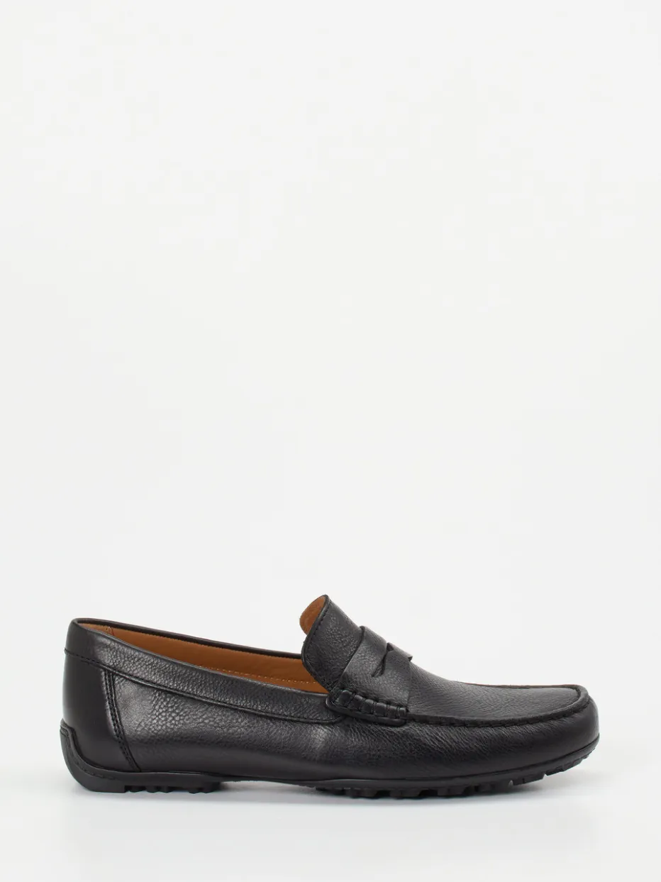 Der Penny Loafer von Geox kombiniert genarbtes Kalbleder mit atmungsaktiver Gummisohle – ideal für Büro und Freizeit im stilvollen Understatement.
