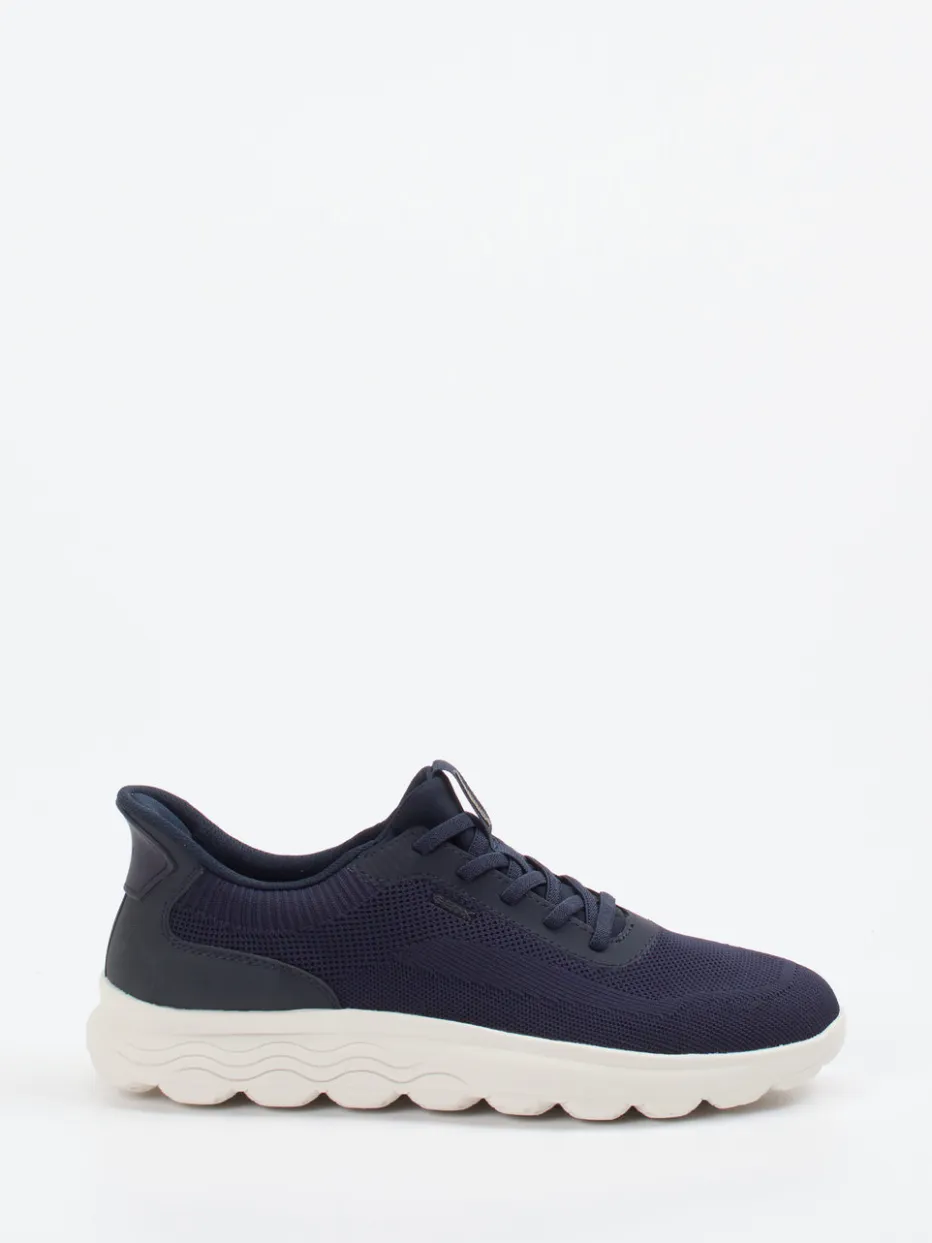 Modernes Design trifft auf funktionalen Komfort.Geox präsentiert mit diesem Herren-Sneaker ein sportives Modell für Alltag und Freizeit. Die gestrickte Textilstruktur sorgt für hohe Atmungsaktivität, während die ultraleichte Gummisohle mit Dämpfung für ein angenehmes Tragegefühl sorgt. Farblich dominiert Dunkelblau, abgesetzt durch Off-White-Elemente und tonale Logos. Der kompakte Schnitt, die stabile Schnürung und der gepolsterte Schaftrand runden den sportlich-minimalistischen Look ab. Die profilierte Außensohle mit blauen Akzenten greift den Trend der „Chunky Sole“ auf und passt in Streetwear-orientierte Looks. Lässt sich ideal mit sportiven Jogpants kombinieren. Geox-typische Luftzirkulationstechnologie trifft auf zeitgemäßes Design.