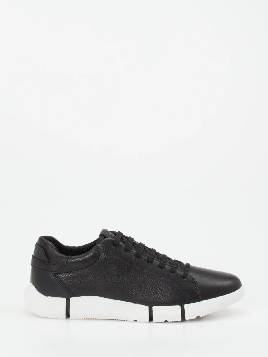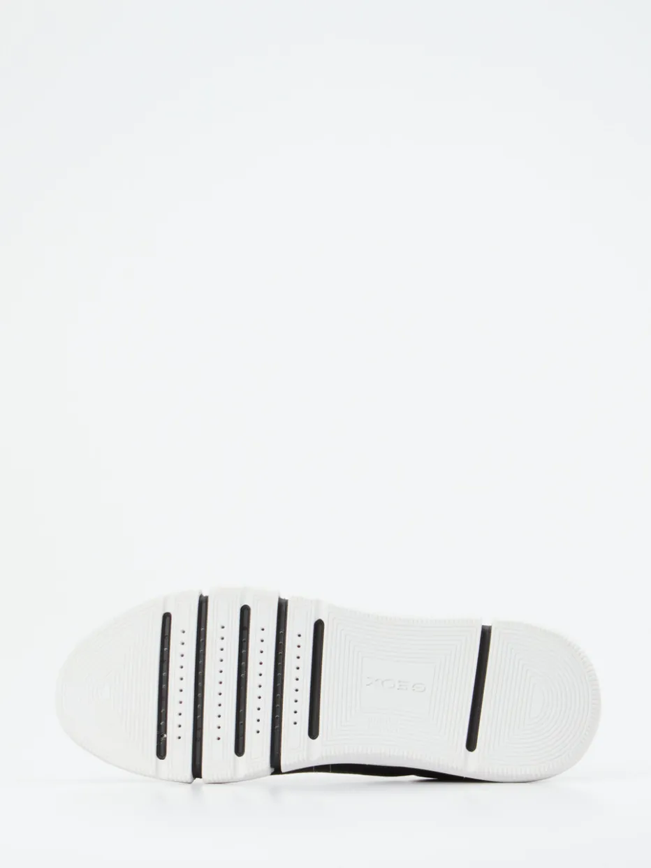 Komfort trifft klare Linien.Geox präsentiert einen Herren-Sneaker der Kategorie Low-Top aus hochwertigem Kalbleder. Ideal für den urbanen Alltag bietet dieser schwarze Ledersneaker mit seiner klassischen, schmalen Silhouette und der weißen Kontrastsohle stilvolle Vielseitigkeit. Die geprägte Oberfläche unterstreicht den hochwertigen Look, während die atmungsaktive Gummisohle mit Geox-Respira-Technologie für ein ausgeglichenes Fußklima sorgt. Mesh-Textil als Innenfutter unterstützt die Luftzirkulation, die komfortable Polsterung an der Ferse erhöht den Tragekomfort. Zeitgemäß minimalistisch ist dieser Schuh auch bürotauglich und lässt sich ideal zu grauen Casual-Hosen oder monochromen Looks kombinieren. Er bietet stilvollen Komfort mit durchdachter Funktion für aktive Tage.