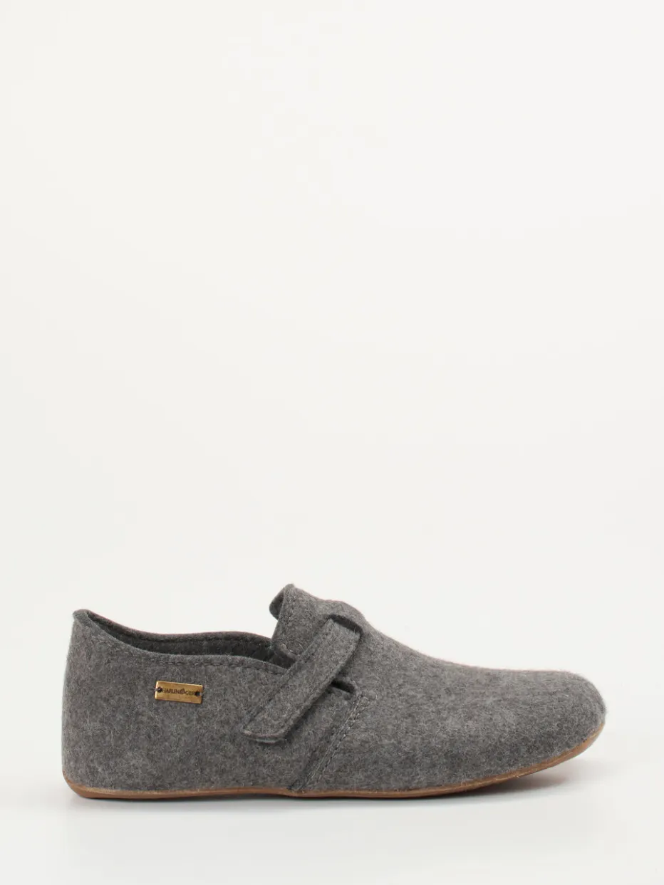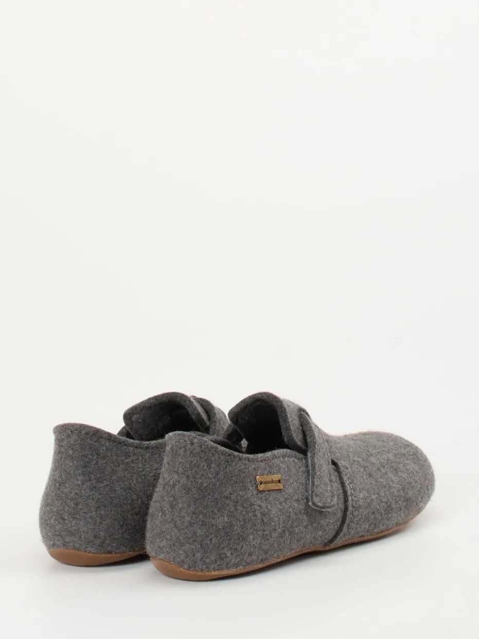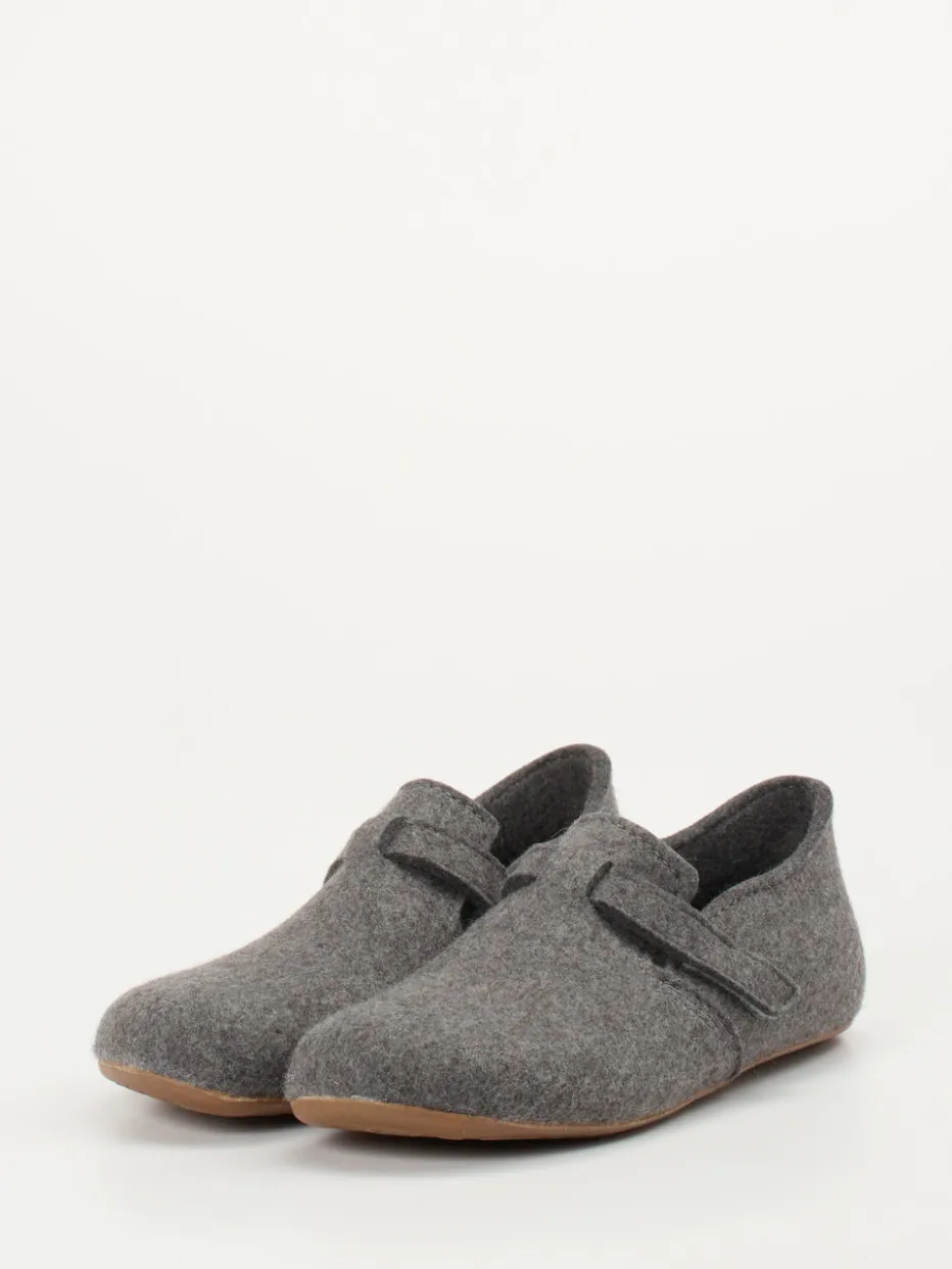 Wärmender Komfort für zuhause.Die Marke Haflinger präsentiert mit diesem Unisex-Hausschuh einen Klassiker für alle Komfortliebhaber. Ob beim Lesen auf dem Sofa oder auf kaltem Dielenboden – der graue Filzpantoffel aus flauschig gewalkter Wolle sorgt für wohlige Wärme. Die geschlossene, rund geformte Silhouette mit Klettverschlussriemen bietet sicheren Halt sowie individuelle Weitenregulierung. Eine profilierte Gummisohle schützt rutschhemmend vor Nässe, das dezente Metall-Logo rundet das minimalistische Design ab. Nachhaltig produziert und im Stil des Slow Living Trends gestaltet. Ideal zu kuscheligen Wollsocken oder einem Fleece-Hausanzug. Funktionales Design trifft auf langlebige Qualität von Haflinger.