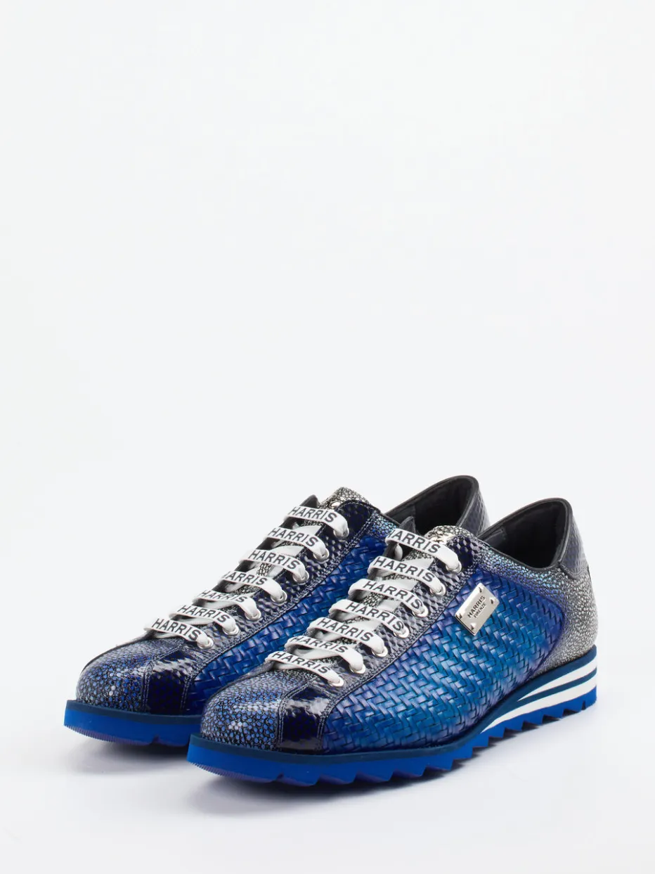 Die Marke Harris präsentiert einen stilprägenden Sneaker für Herren mit auffälliger Flechtstruktur und glänzenden Metallic-Elementen.