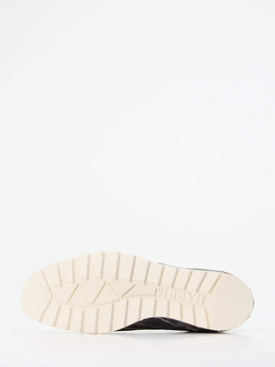 Statement für urbane Looks.Dieser Sneaker von Harris vereint extravagantes Design mit hochwertigem Kalbleder. Ideal für stylische Anlässe zwischen Freizeit und Ausgehen verbindet der Low-Top-Sneaker schneeweißes Kalbleder in Reptiloptik mit kontraststarkem Schwarz-Weiß-Camouflage und goldenen Akzenten. Die glänzende Oberfläche und 3D-geprägte Details sorgen für exklusive Impulse. Eine gummierte Sohle mit Haifischzahn-Profil komplettiert das urbane Design. Logo-Schnürsenkel und silberne Markenaccessoires unterstreichen den expressiven Charakter. Kombiniert mit einer Slim-Fit-Jeans oder einer beige Bomberjacke gelingt ein moderner Streetstyle-Look. Zumnorde exklusiv mit kunsthandwerklicher Raffinesse interpretiert.