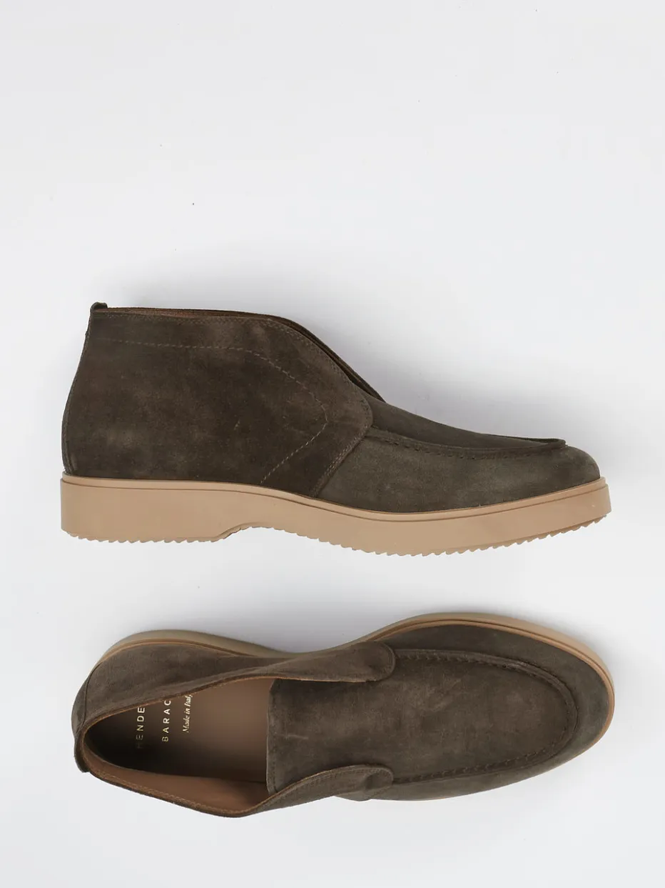 Modernes Understatement in Braun.Henderson interpretiert den klassischen Herren-Halbschuh hier als minimalistischen Desert Boot. Ob zu gepflegter Chino oder smartem Strick – das samtig angeschliffene Veloursleder in Dunkelbraun verleiht diesen Boots einen stilvollen Auftritt im urbanen Alltag wie im Büro. Die schlupfartige Silhouette mit elastischem Rist sorgt für komfortables Anziehen; die bequeme Profil-Gummisohle bietet sicheren Halt und einen zeitgemäßen Look. Gezielt gesetzte Ton-in-Ton-Nähte, eine natürliche Laufsohlenfarbe und gepolsterter Einstieg unterstreichen den minimalistischen Charakter. Inspiriert vom „Quiet Luxury“-Trend lässt sich dieses Modell vielseitig kombinieren. Hochwertige Verarbeitung mit spürbarer Alltagstauglichkeit – typisch Henderson.