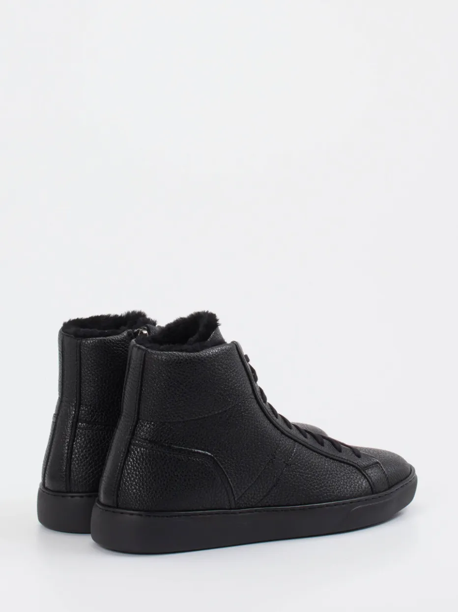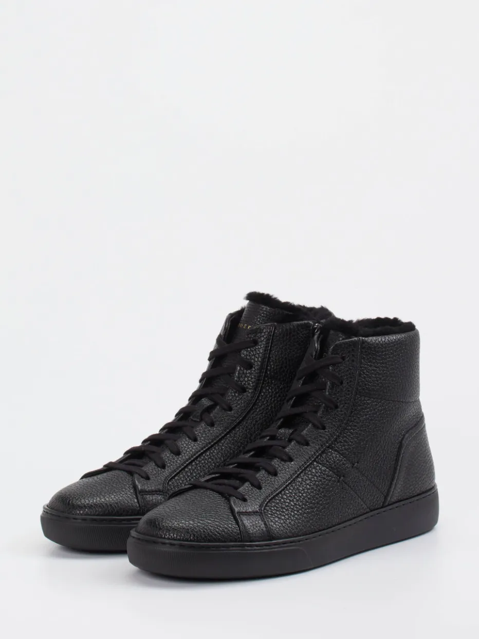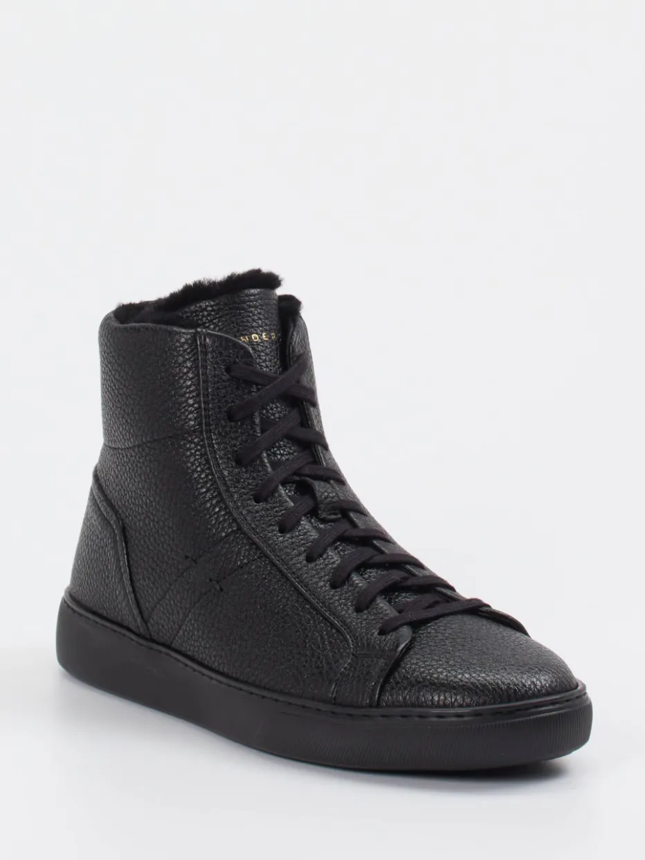 Schwarz. Warm. Raffiniert.Der High-Top-Sneaker von Henderson spricht Herren an, die Minimalismus und Komfort schätzen. Für kühle Tage designt, kombiniert das Modell hochwertiges Hirschleder mit samtiger Narbung und einem warmen Innenfutter aus Lammfell. Der cleane Look in tiefem Schwarz und die klare Linienführung unterstreichen den dezenten Luxusanspruch – stilvoll ergänzt durch einen seitlichen Reißverschluss und eine profilierte Gummisohle mit metallener Markenplakette. Funktional wie modisch am Puls der Zeit, harmoniert der Sneaker mit urbaner Streetwear und gepflegter Wintergarderobe. Ein exklusiver Herren-Sneaker mit Komfort und Understatement – typisch Henderson.
