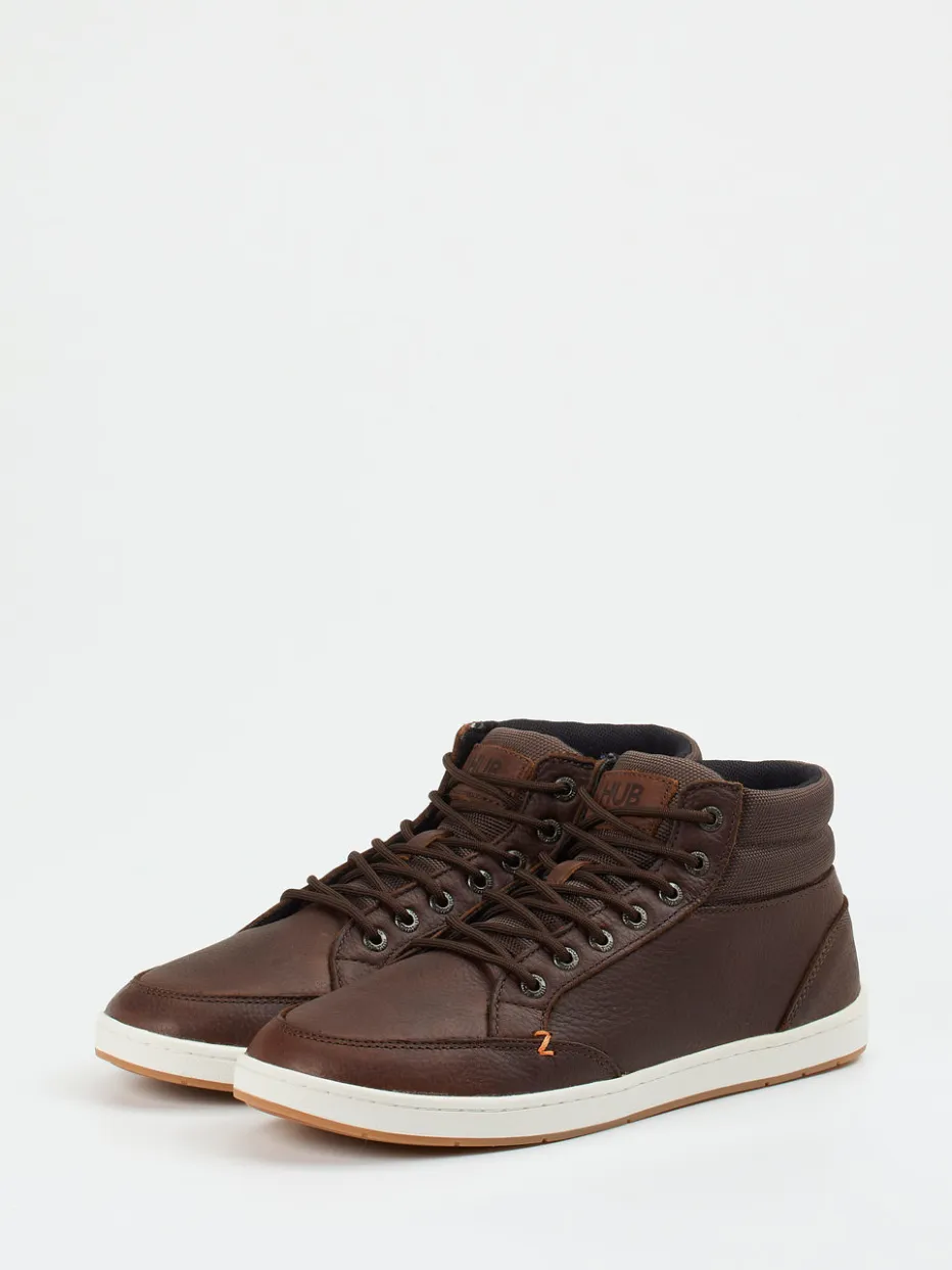 Der Herren-Sneaker von HUB bringt Streetstyle und Funktion in idealer Balance. Das Mid-Top-Modell kombiniert eine robuste Silhouette mit einem hochwertigen Materialmix.