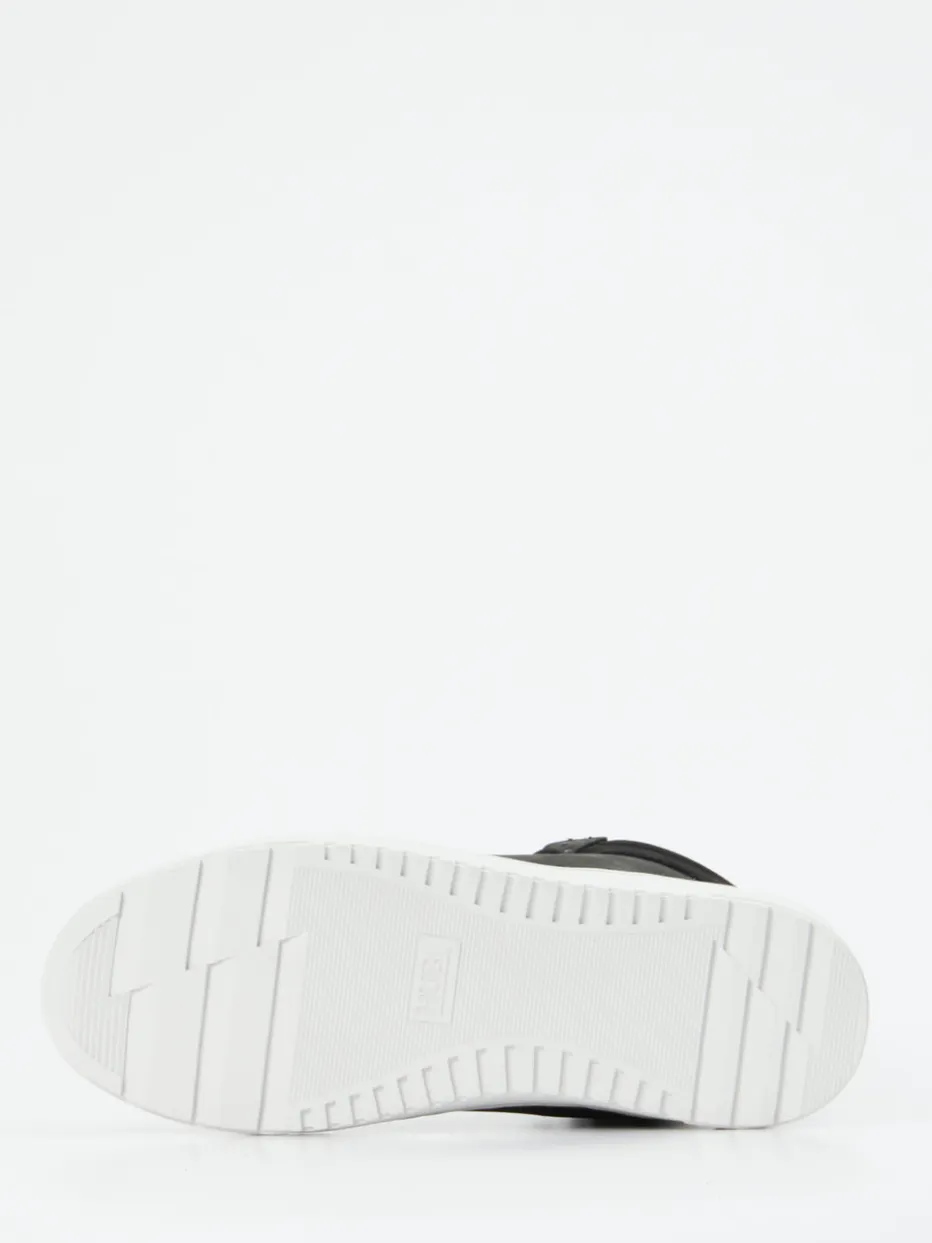 Schwarz, warm, urban: optimal durch den Winter.HUB präsentiert mit diesem Sneakerboot ein Herrenmodell für kalte Tage mit Stil. Ob beim Spaziergang in der Stadt oder auf der täglichen Pendelstrecke – das schwarz-matte Fettleder mit samtig angeschliffener Nubuk-Haptik sorgt für Robustheit und Komfort. Innen schützt eine flauschige Textilfaser in Lammfelloptik vor Kälte, während die weiß profilierte Gummisohle rutschhemmenden Halt garantiert. Die knöchelhohe Silhouette mit Schnürung, orangefarbenen Nahtdetails und Ton-in-Ton-Logo auf der Zunge fügt sich ideal in minimalistische Streetwear-Looks ein. Aktuelle Wintertrends wie „Quiet Luxury“ greifen das dezente Design stimmig auf. HUB kombiniert klare Linien mit funktionaler Wärme – für zuverlässige Alltagstauglichkeit.
