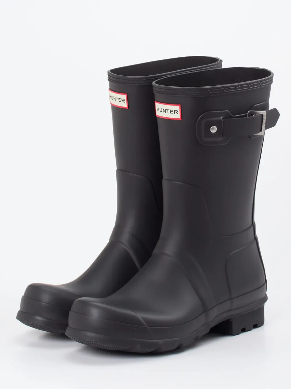 Für nasse Tage mit Stil.Hunter präsentiert funktionale Gummistiefel für Herren in schlichtem Schwarz. Ideal für den Alltag bei wechselhaftem Wetter: Das strapazierfähige, matte Synthetikmaterial schmiegt sich in gerade geschnittener Silhouette um das Bein, während die silberfarbene Schnalle am Schaft für individuelle Passform sorgt. Die strukturierte Laufsohle mit starkem Profil gibt Halt auf rutschigem Untergrund. Der eingeprägte Marken-Patch und dezente Designelemente unterstreichen den Utility-inspirierten Look im Sinne der Quiet Utility AW24. Perfekt zu Regenjacke und Thermosocken kombinierbar. Robuste Funktion trifft auf britischen Purismus – typisch Hunter.