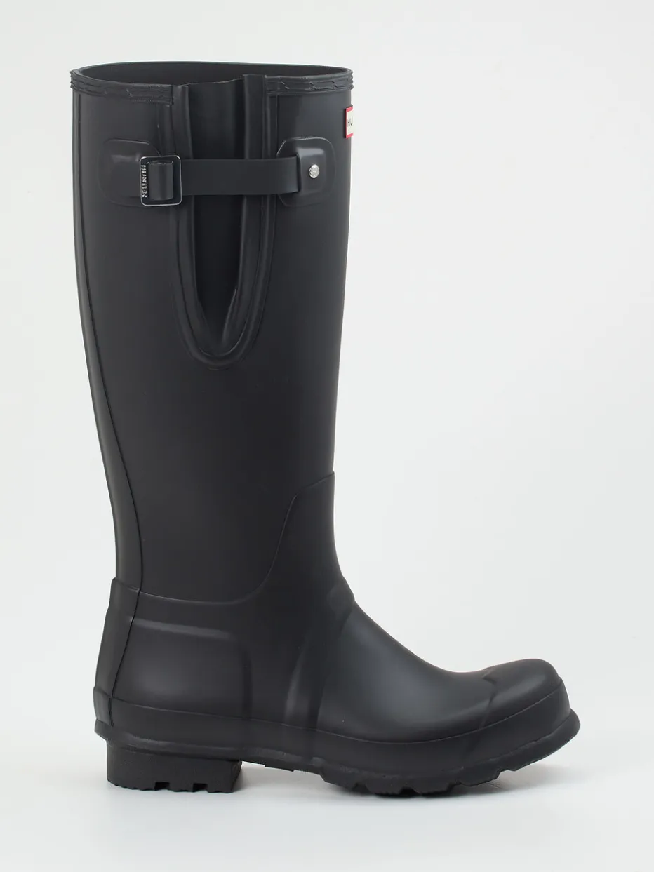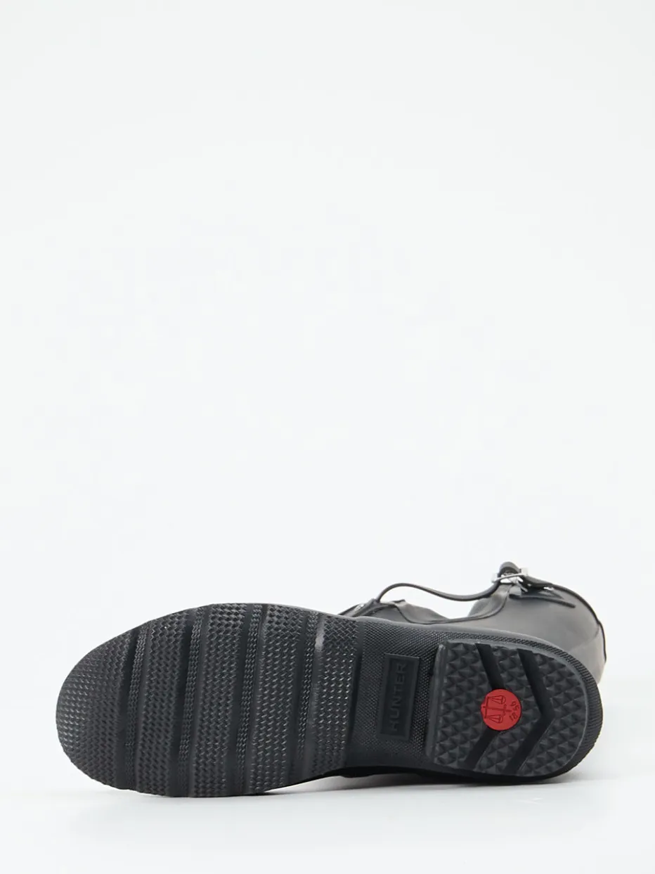 Der schwarze Gummistiefel von Hunter überzeugt mit seiner matten Oberfläche, verstellbarem Schaft und funktionaler Profilsohle – ein stilvoller Begleiter bei jedem Wetter.