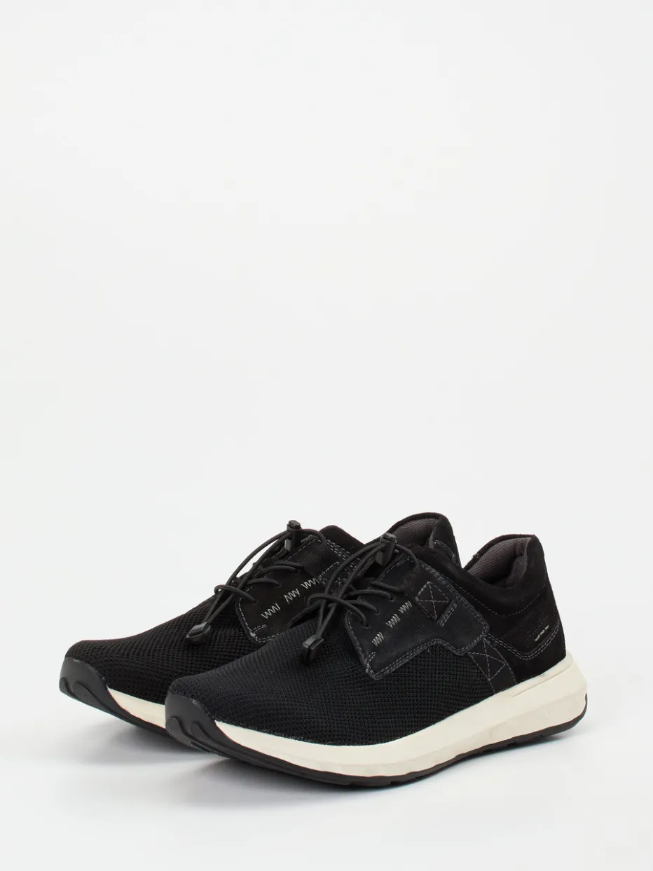 Sportlichkeit trifft Alltagstauglichkeit.Der Komfort-Sneaker von Josef Seibel überzeugt durch urbanes Design und hohen Tragekomfort. Ob beim Stadtspaziergang oder im aktiven Alltag – das atmungsaktive Meshmaterial sorgt in Kombination mit samtig angeschliffenem Veloursleder für ein angenehmes Fußklima. Kontrastnähte, eine sportlich-flache Silhouette sowie die Logo-Prägung an der Ferse unterstreichen den klaren Look in Schwarz. Der Schnellverschluss und das gepolsterte Fußbett erleichtern den täglichen Einsatz. Modisch wirkt das Modell durch seine klare Formsprache mit Streetwear-Note. Lässt sich stilsicher zu Stretch-Jeans oder sportiven Jacken kombinieren. Durchdachte Komfortdetails in unverwechselbarer Josef-Seibel-Qualität.