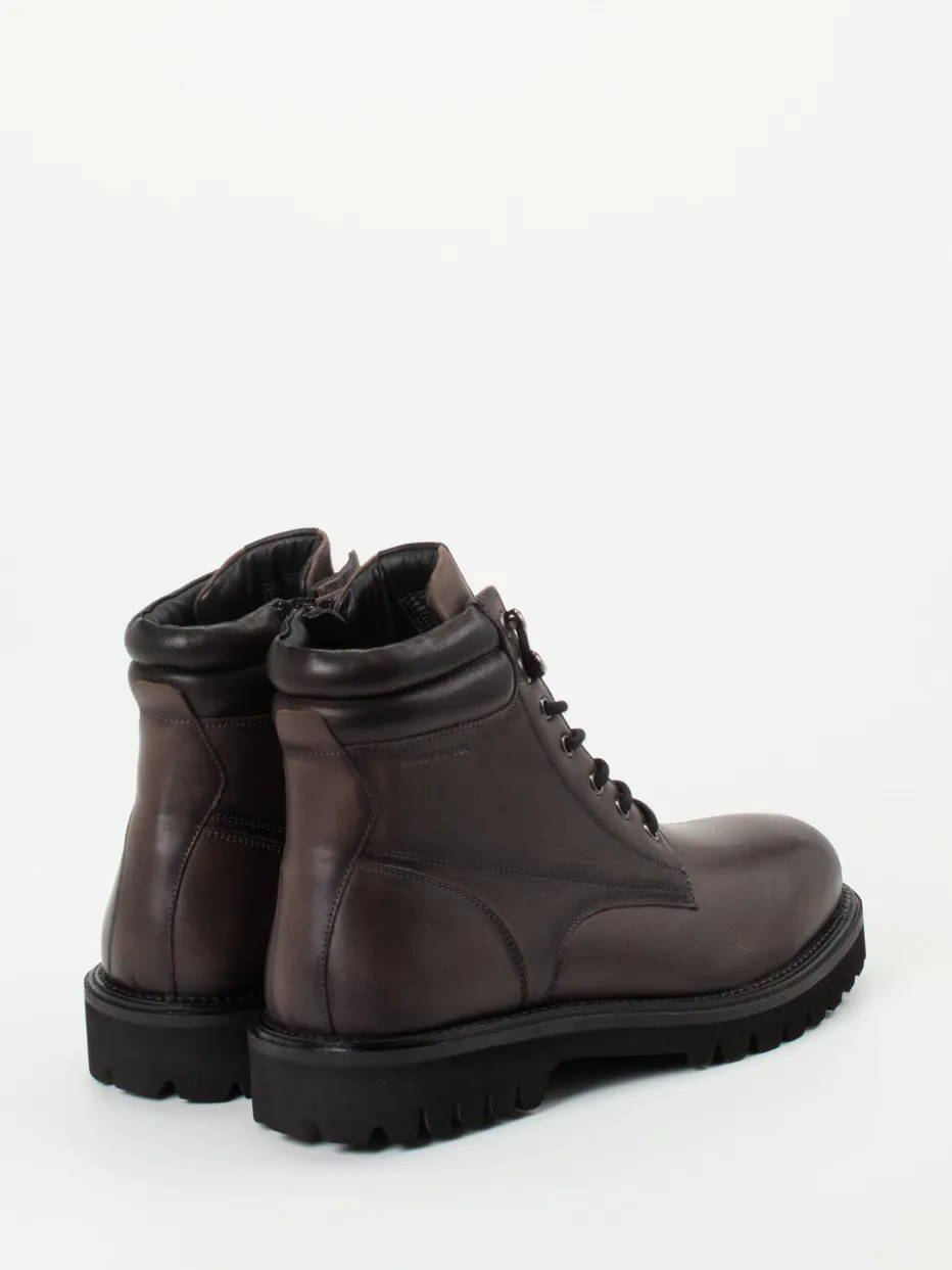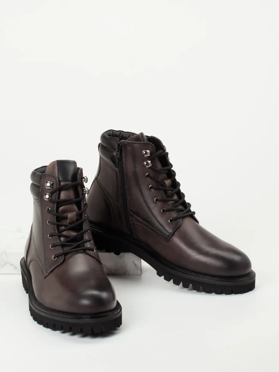 Dieser Herrenschuh verbindet robustes Kalbleder mit praktischem Reißverschluss und urbaner Workwear-Anmutung – ideal für herbstliche Abenteuer mit Stil.