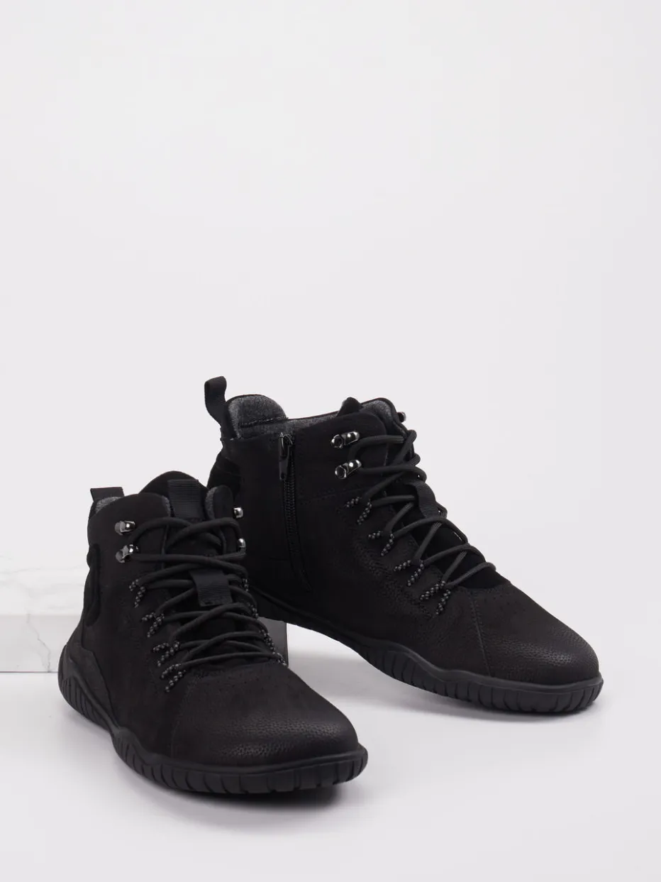 Robust gestylt für urbane Abenteuer.Josef Seibel präsentiert sportliche Schnürboots für Damen mit Outdoor-Attitüde. Die schwarze Farbgebung mit Ton-in-Ton-Schnürung, kombiniert mit genarbtem Veloursleder und warmer Textilfaser im Inneren, macht diese Boots herbsttauglich und stilvoll zugleich. Durch die knöchelhohe, kompakte Form und die rutschfeste Profilsohle bieten sie sicheren Halt im Alltag oder auf Spaziergängen. Ein seitlicher Reißverschluss erleichtert den Einstieg, während Metallösen in Gunmetal-Optik den Utility-Look unterstreichen. Die Boots passen perfekt zu wetterfesten Jacken oder schmalen Hosen. Komfort trifft auf Funktionalität mit markentypischer Qualität von Josef Seibel.