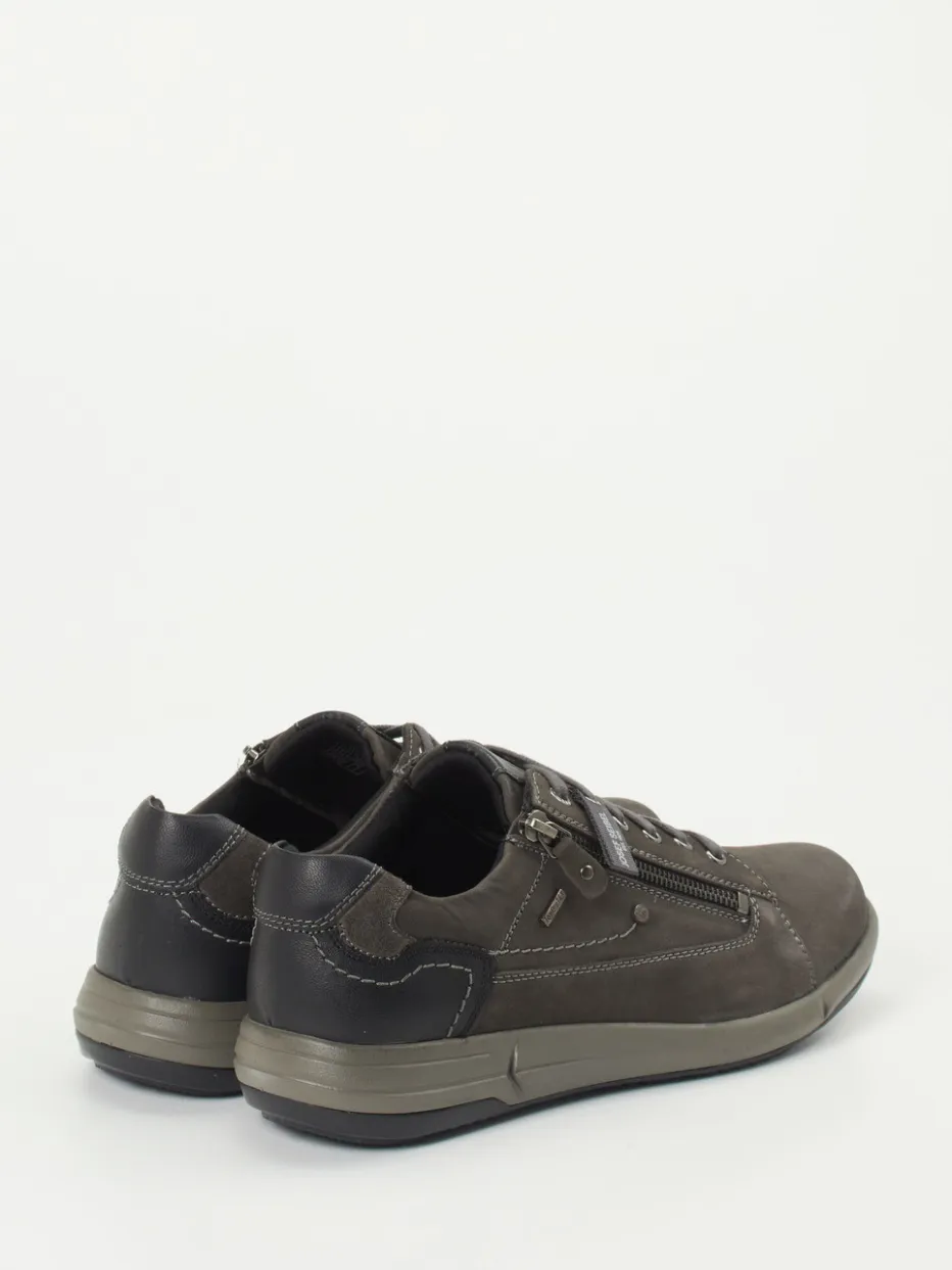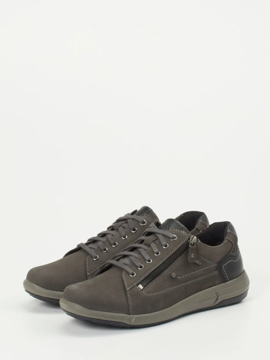 Komfort trifft auf urbanen Minimalismus.Der grau gehaltene Herrenschnürschuh von Josef Seibel präsentiert sich als moderner Komfort-Sneaker mit funktionalen Details. Ob auf dem Weg ins Büro oder beim Spaziergang durch die Stadt – das granitgraue Nubukleder mit samtig matter Oberfläche verbindet Alltagstauglichkeit mit stilvollem Understatement. Kontrastnähte, seitlicher Reißverschluss und eine dunkel gehaltene Gummisohle mit markantem Profil ergänzen das klassisch flache Design. Innen sorgt atmungsaktives Mesh-Futter in Kombination mit einem gepolsterten, herausnehmbaren Fußbett für ein angenehmes Tragegefühl – auch an langen Tagen. Typisch für die Utility-inspirierte Streetwear liegt dieser Schuh im Trend der Saison und lässt sich ideal mit Jeans oder Cargohosen kombinieren. Ein funktionaler Begleiter, der Komfort, Stil und Qualität vereint.