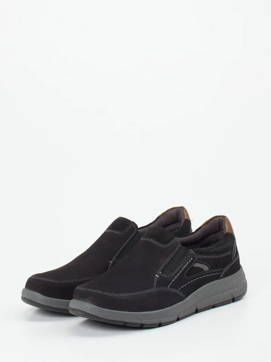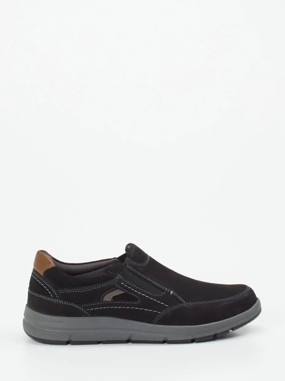Dieser komfortable Herren-Slip-On zeigt sich mit weichem Nubukleder, elastischen Einsätzen und gepolstertem Einstieg – ideal für entspannte Alltagseinsätze.